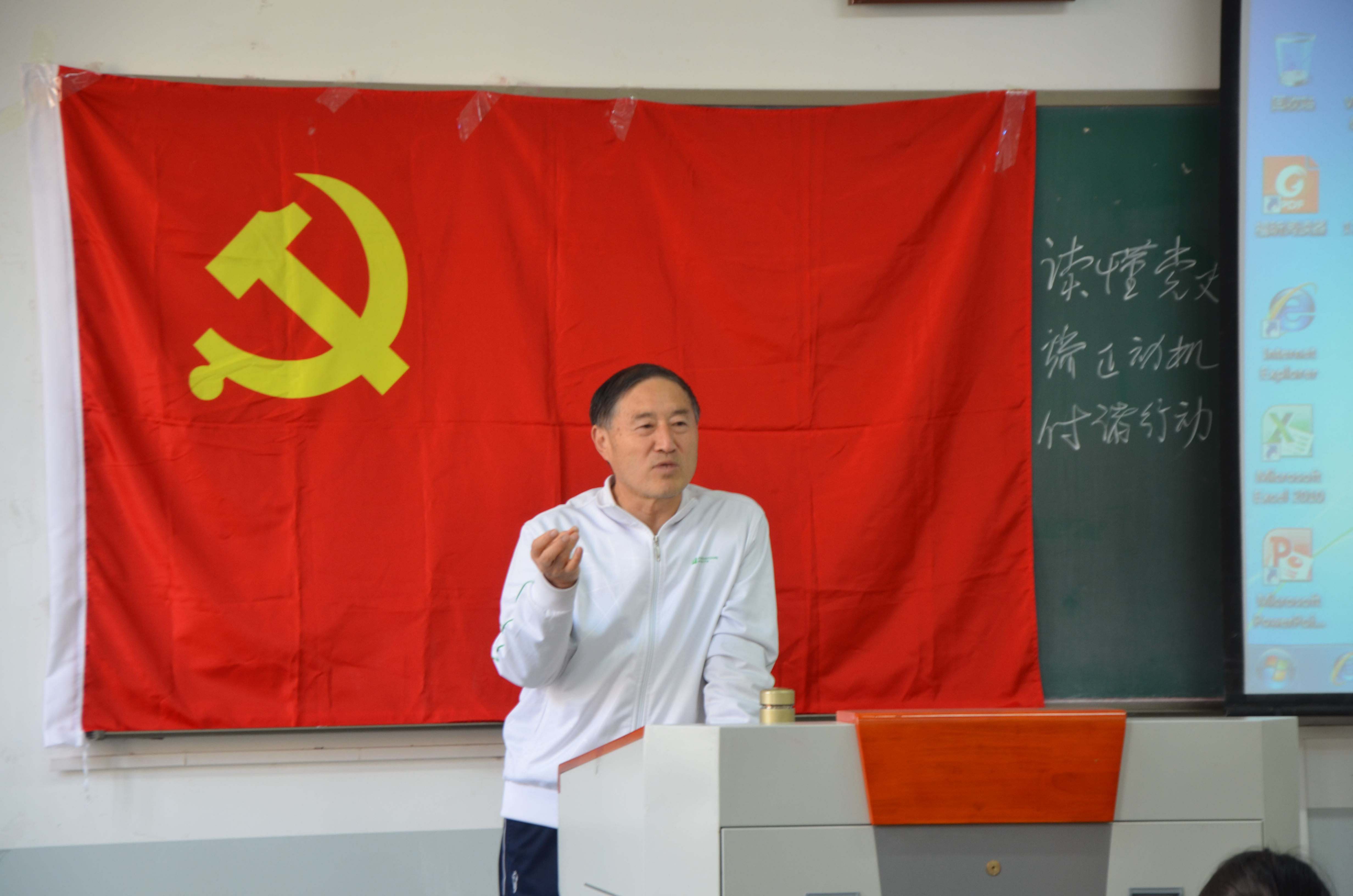 会议伊始,李沛首先对主讲人宋家永的理论学习成果和所取得的学术成就进行了简要介绍。凭借多年来对党的理论的深入学习和认识,宋家永将此次座谈内容分为三个板块,即读懂党史、端正动机、付诸行动。围绕重温党史这一主题,宋家永带领在座同学回顾了从封建社会到新民主主义社会,再到如今的社会主义社会的历史,重温了中国共产党从诞生到曲折发展、不断自我完善的艰辛之旅、成长之旅、壮阔之旅,使其更加明确了党的理论方针的科学性和正确性及其指导路线的伟大性和光荣性。随后,宋家永强调,党是无限的动力源泉,这种动力体现在学习、工作、生活中的方方面面,并呼吁在场积极分子们端正入党动机,坚定理想信念,拒绝不良诱惑,争做新时代大学生,在思想上、行动上积极向党组织靠拢,争取早日成为一名合格的共产党员,真正做到“未进党组织,先做党的人”。以个人经历为例,宋家永饱含深情地向在座积极分子详细介绍了中国共产党在民族独立、国家富强、人民幸福的伟大事业中做出的牺牲和贡献。他告诫在场积极分子,要把握当下、忆苦思甜、端正态度,时刻以一名优秀的共产党员严格要求自己,以实际行动践行着对党和人民的责任使命。