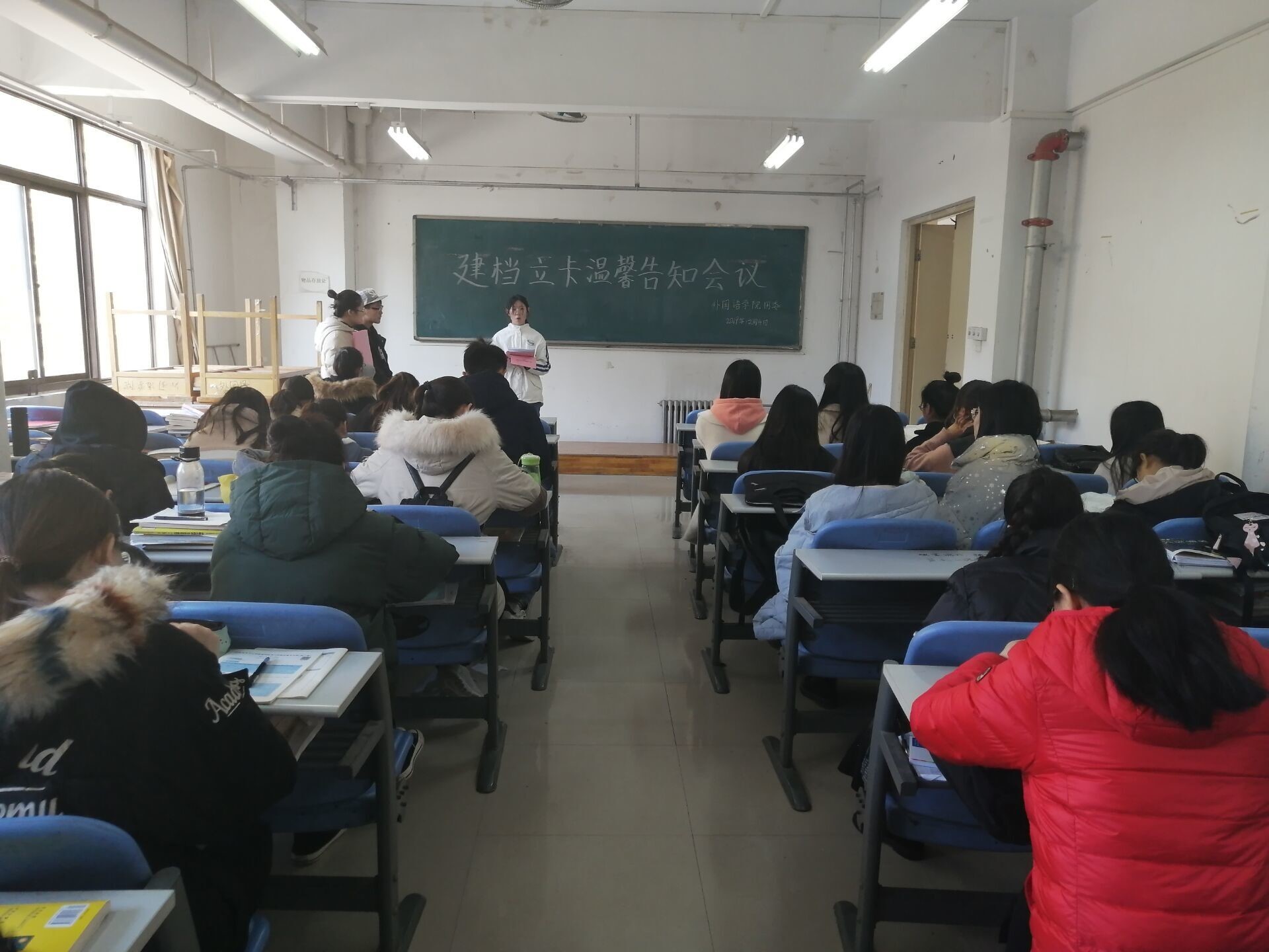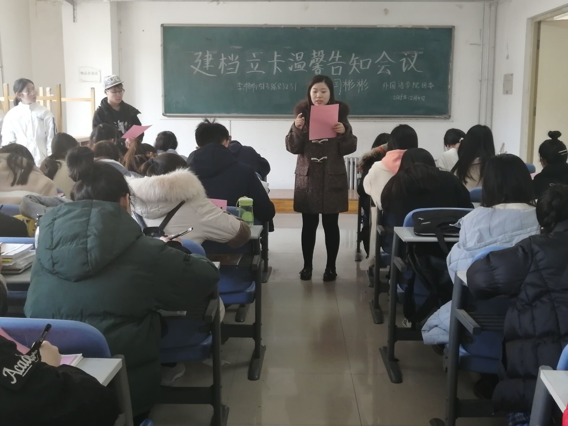 本网讯(审稿:李沛 供稿:梅如意)为让我院学生掌握建档立卡政策相关知识,进一步完善我院建档立卡贫困家庭学生资助工作办法,确保我院建档立卡相关工作的顺利开展,12月4日中午12点半,我院在龙子湖校区海棠园二楼自习室召开了建档立卡温馨告知会议。团委老师闫彬彬、我院勤工部全体成员携我院全体建档立卡学生出席此次会议。