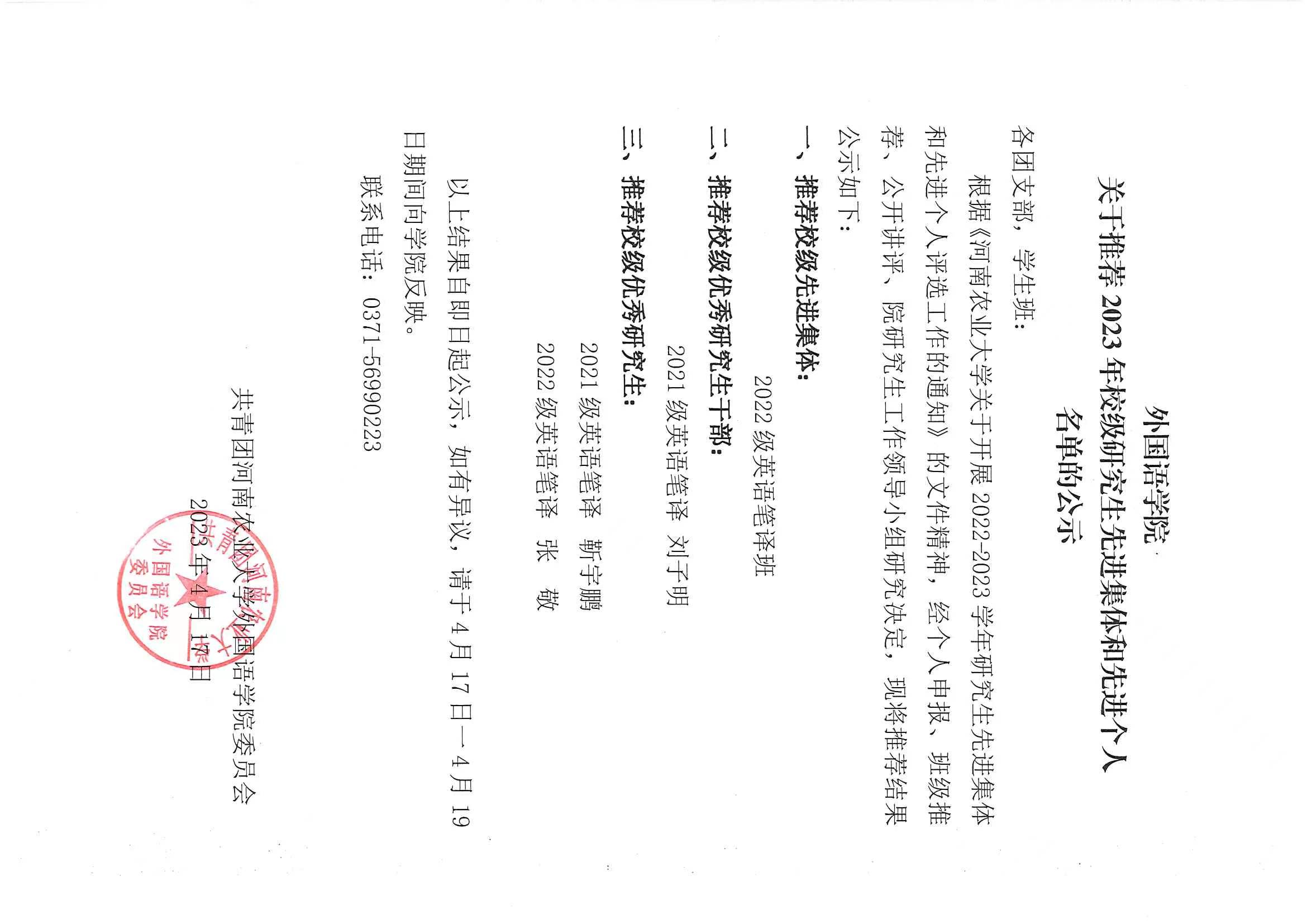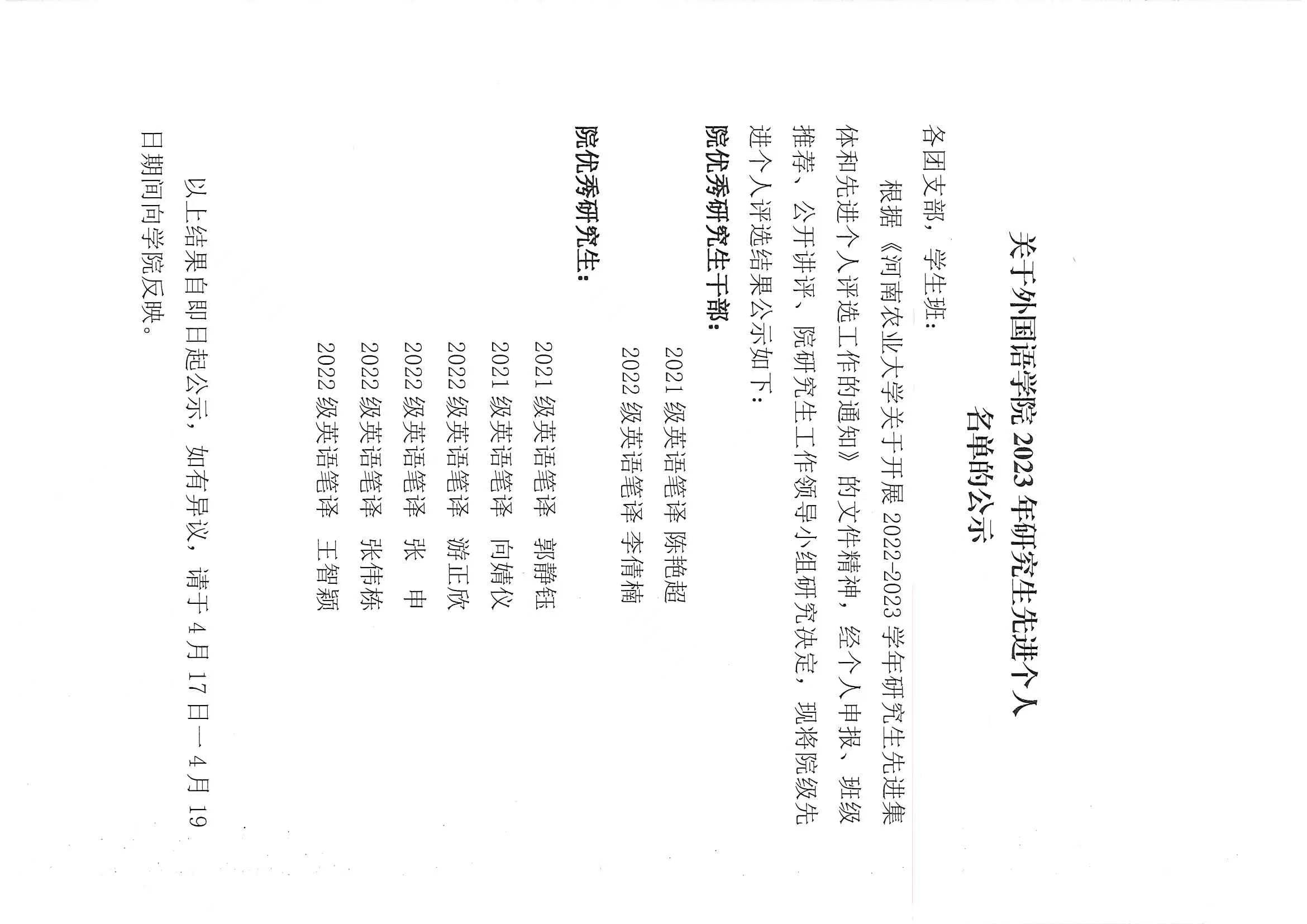 纵横中文网 关于推荐2023年校级研究生先进集体和先进个人名单公示