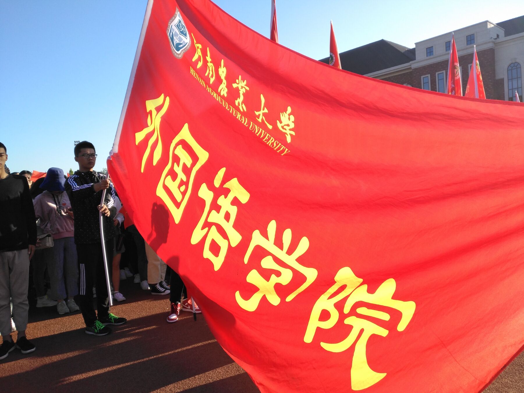 五星红旗迎风飘扬,见证着新中国69年风云激荡的光辉岁月,见证着中华民族一步步走向富强,屹立于世界的东方。农大学子也将展现新的精神面貌,为祖国的发展贡献自己的力量。