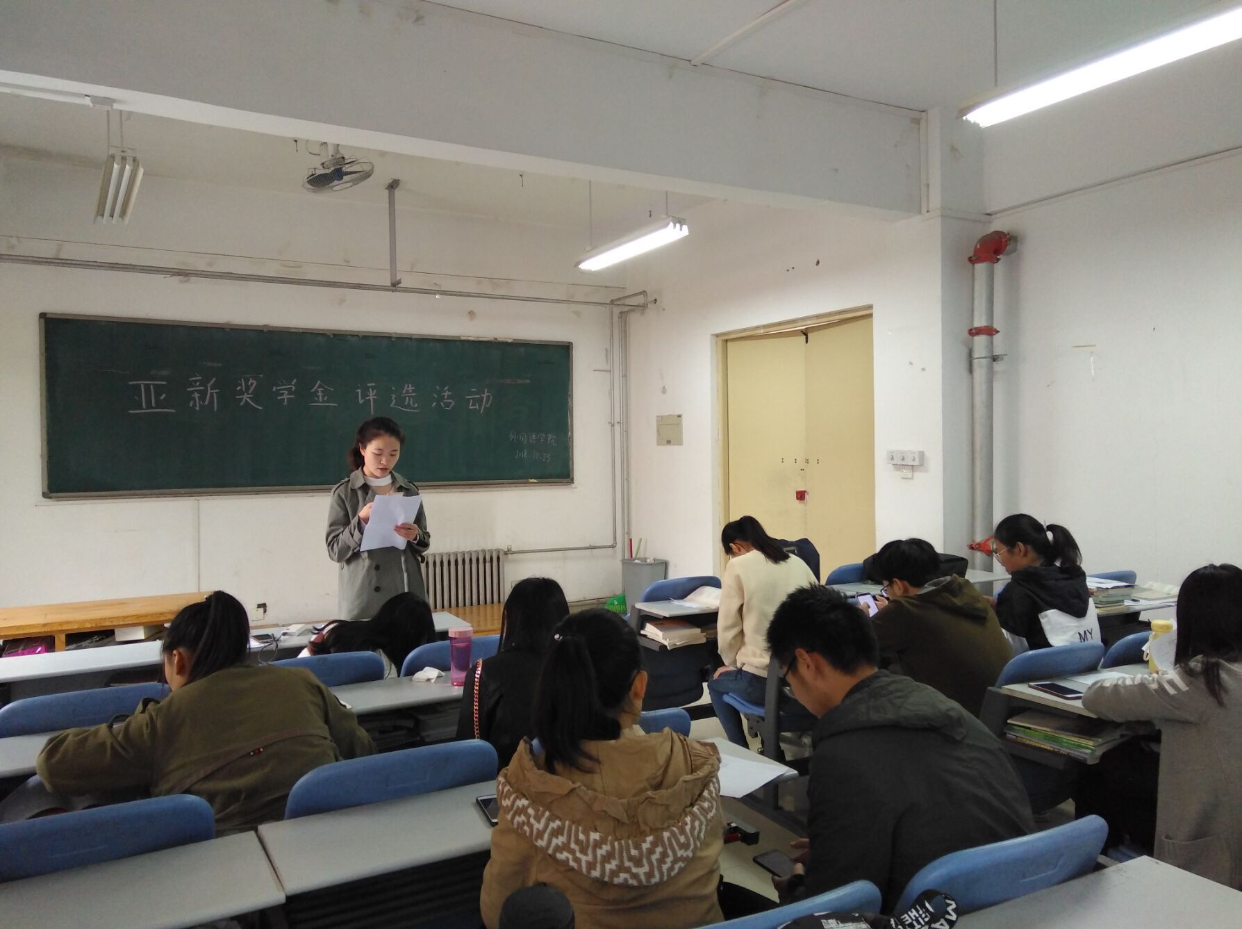 会议伊始,李海燕详细介绍了亚新奖学金的评选标准,并强调评选要本着公平、公开、公正的原则,严格评审条件和评审标准,切实做好本次评审工作。评选会上,参选者满怀自信地从学习成绩、校内实践经历、竞赛获奖情况、校外实习经历四个方面介绍了自己的突出之处,充分展示自己在学习、生活、工作方面的成就,并分享了自己大学生活的收获与感触,焕发出昂扬向上、乐观进取的精神风貌。经过各项评审材料的成绩汇总及现场量化综合打分之后,大会最终推选出马金东、高月、楚聪代表我院参选校级亚新奖学金的评选。