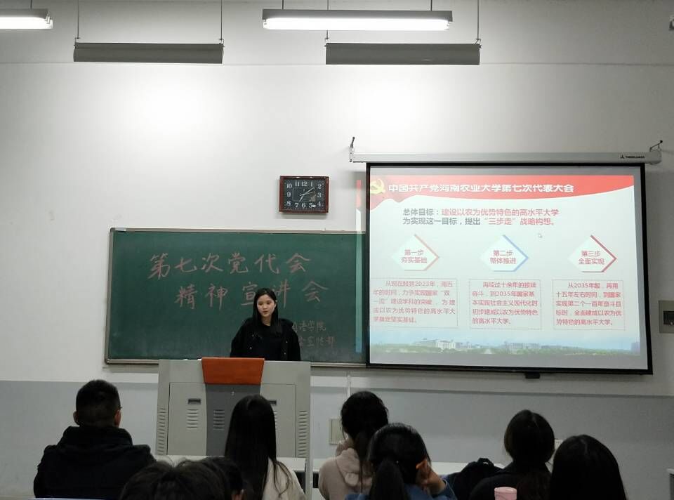 本网讯(审稿:王颖 供稿:陈晓寒)为更好传达中国共产党纵横中文网 第七次党代会精神,引导学生了解学校发展方向,学院于10月31日晚七点在繁塔楼C103教室召开了“校第七次党代会精神宣讲会”。学院各年级宣传委员和各部门宣传人员参与了此次宣讲活动。