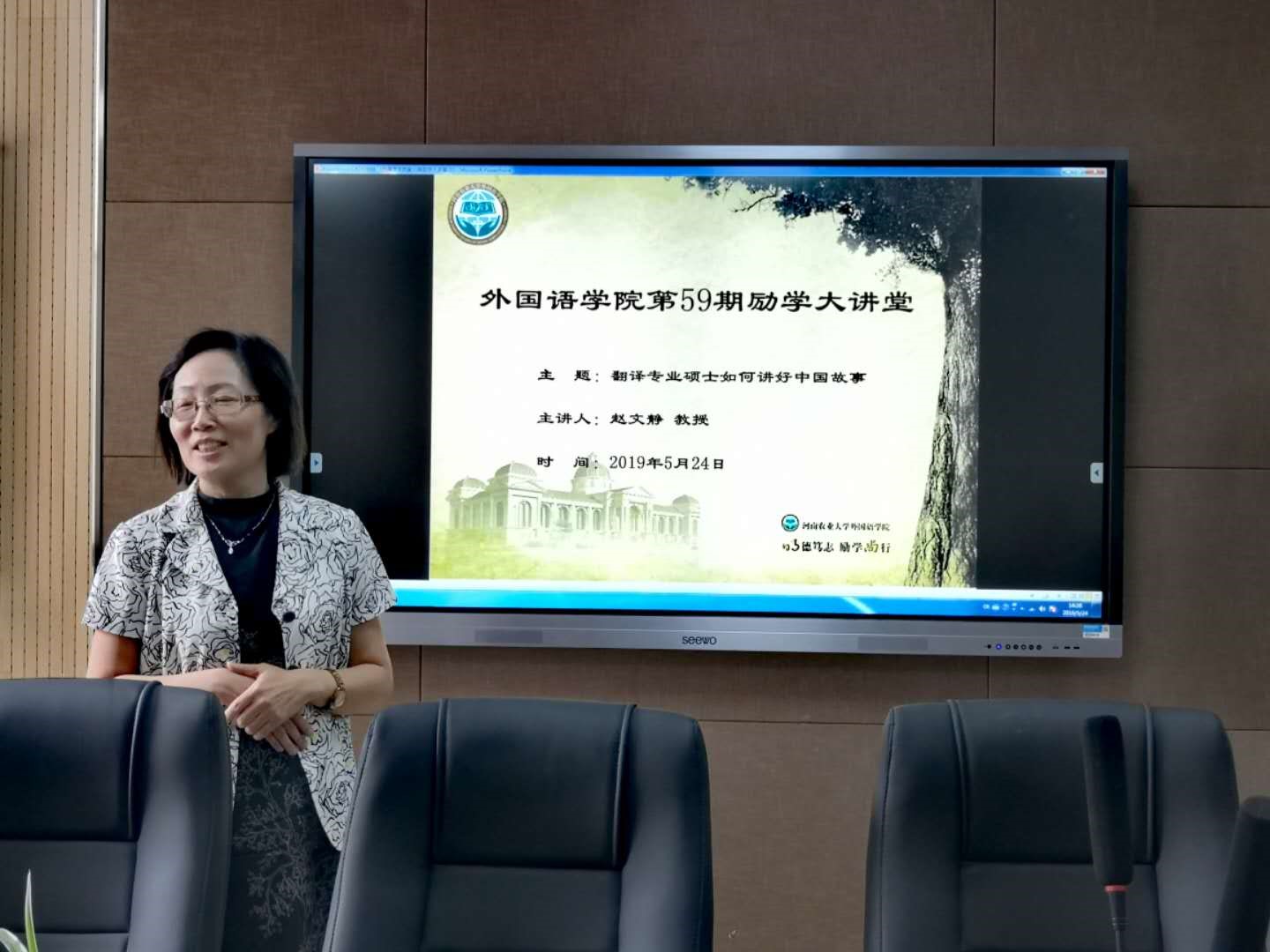 (供稿:刘淑苗)党的十九大报告提出,要“加强中外人文交流,以我为主、兼收并蓄。推进国际传播能力建设,讲好中国故事,展现真实、立体、全面的中国,提高国家文化软实力。”为响应这一重大的时代命题和使命,我院于2019年5月24日邀请河南师范大学教授、翻译学博士赵文静教授走进纵横中文网 第59期励学大讲堂,为我们做了以“翻译专业硕士如何讲好中国故事”为主题的讲座。