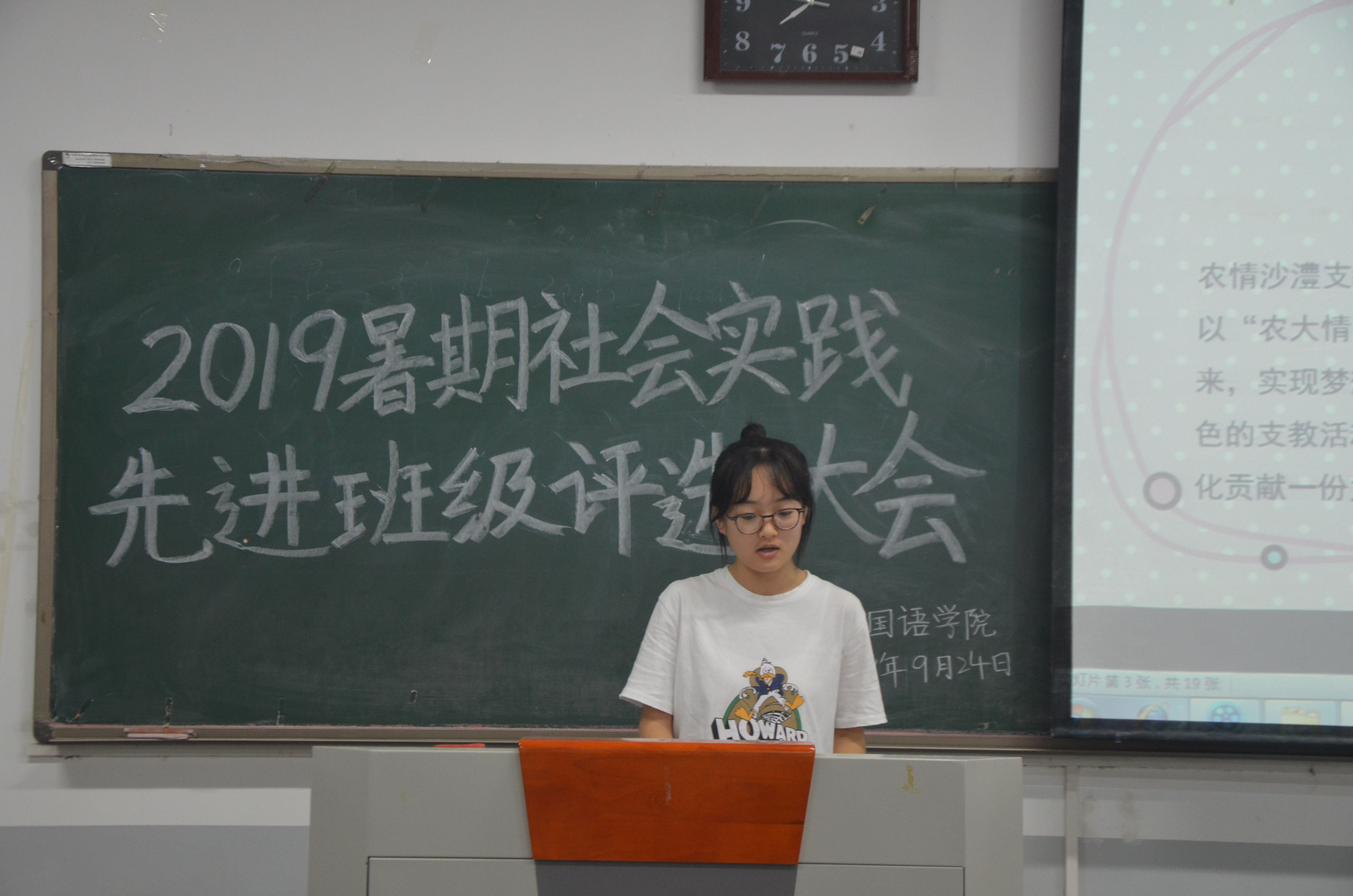 本网讯(审稿:李沛 供稿:梅如意)为祝贺暑期社会实践活动的顺利开展,对实践过程中的优秀班级进行表彰,学院于9月24日晚7点半在龙子湖校区繁塔楼C109教室举办2019年暑期社会实践先进班级评选大会。