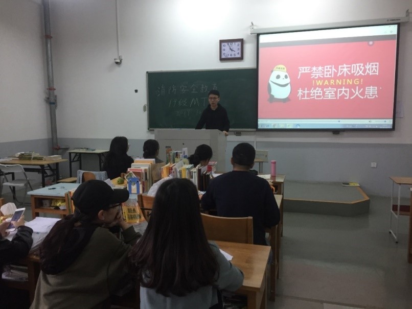 本网讯(审稿:李沛 供稿:梅如意)为传播消防安全理念,普及消防安全常识,进一步增强我院学生消防安全意识,10月15日下午,学院团委组织全体研究生在龙子湖校区繁塔楼教室E108举办消防安全知识教育主题班会。
