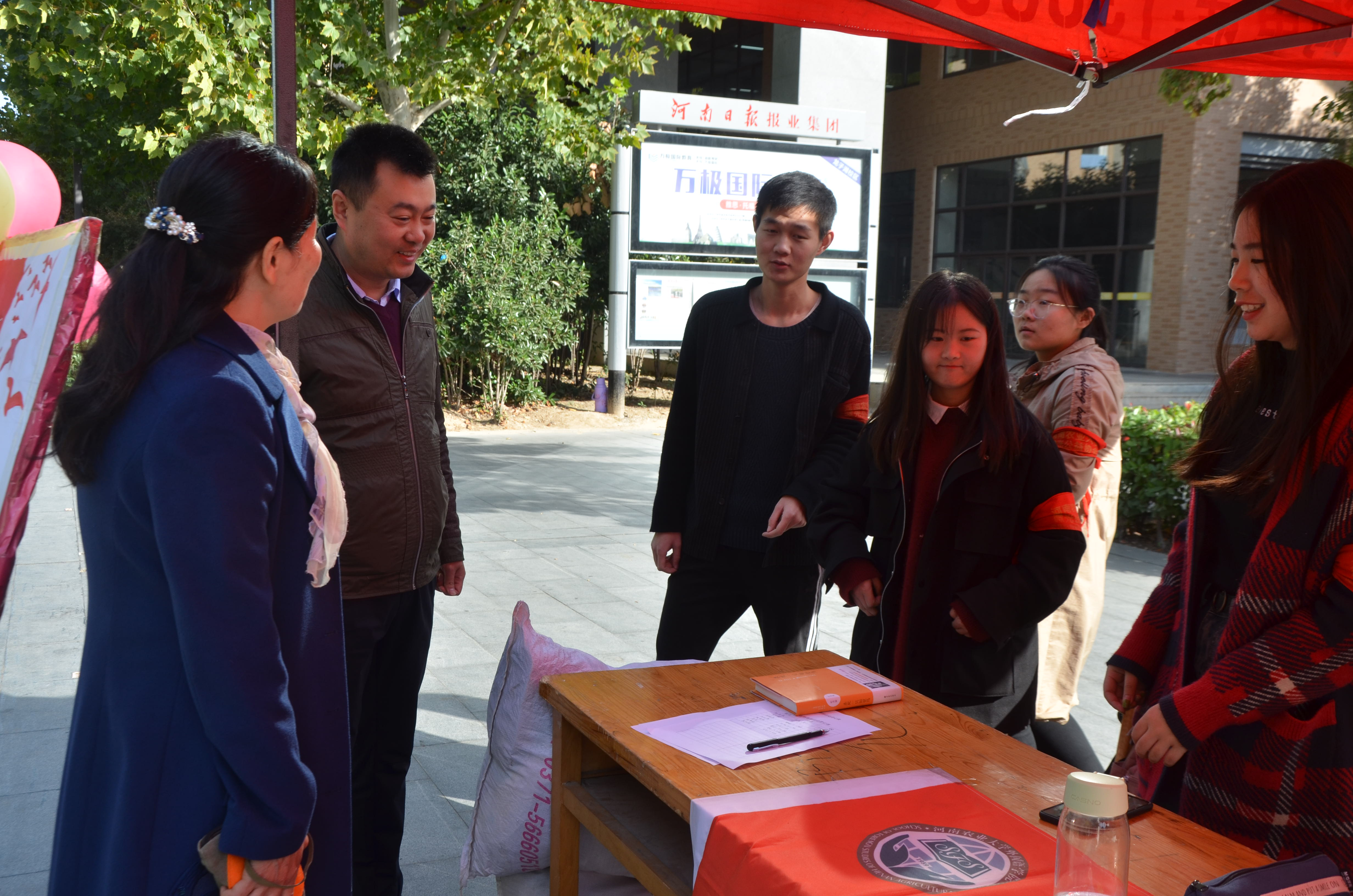 本网讯(审稿:李沛 供稿:张丹丹)为弘扬奉献精神,培育和践行社会主义核心价值观,我院微光公益协会于11月10日在龙子湖校区一餐厅广场举行了“冬日送温暖”募捐活动。