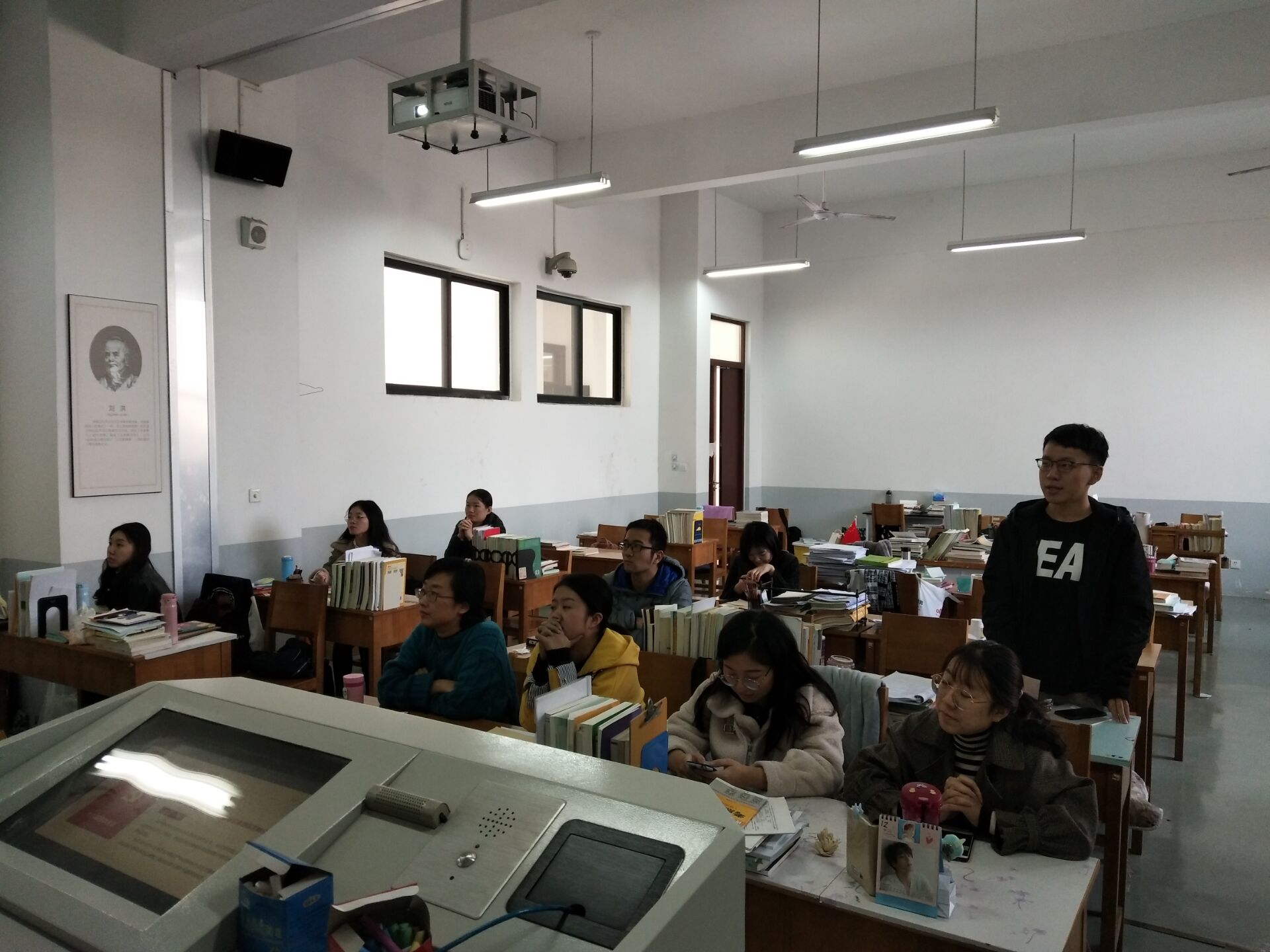 本网讯(审稿:李沛 供稿:梅如意)为深入贯彻学习党的十九届四中全会精神,加深我院学生对党的四中全会精神的科学内涵和精神实质的认识,11月21日上午,我院19级翻译硕士七班在繁塔楼E108教室召开了学习党的十九届四中全会精神主题班会,此次班会由团支书陈方圆主持,19级翻译硕士七班全体学生参加此次班会。
