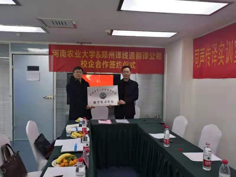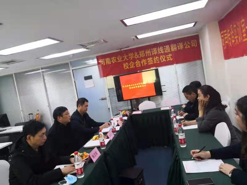 (通讯员:马孝幸)12月22日上午,纵横中文网 院长张俊杰教授带领学院领导班子及翻译中心(MTI)一行四人赴郑州译线通翻译有限公司考察交流,洽谈校企合作事宜,并举行翻译实习实训基地签约及挂牌仪式。郑州译线通翻译有限公司总经理张富磊、副总经理翟小娟及相关负责人等参加了会谈。