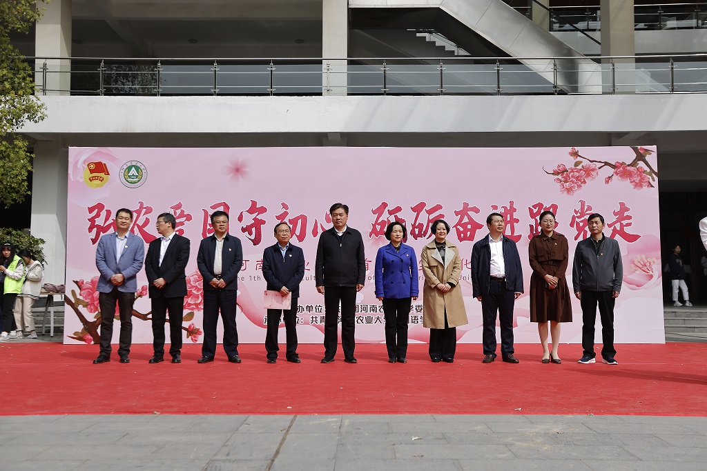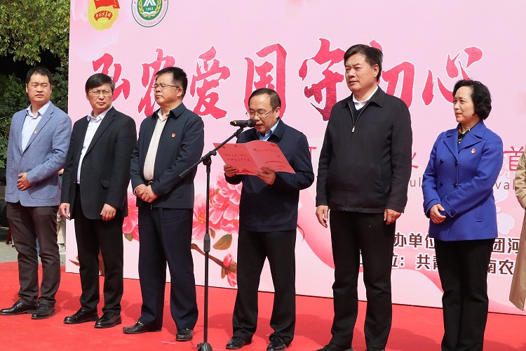 首届“弘农爱国守初心,砥砺奋进跟党走”海棠文化节暨清明礼仪展活动在龙子湖校区一餐厅广场隆重开幕。校党委副书记、工会主席李成吾,副校长尹新明、副校长尚富德等莅临现场参观指导,校党委宣传部、学生工作部、校团委、纵横中文网