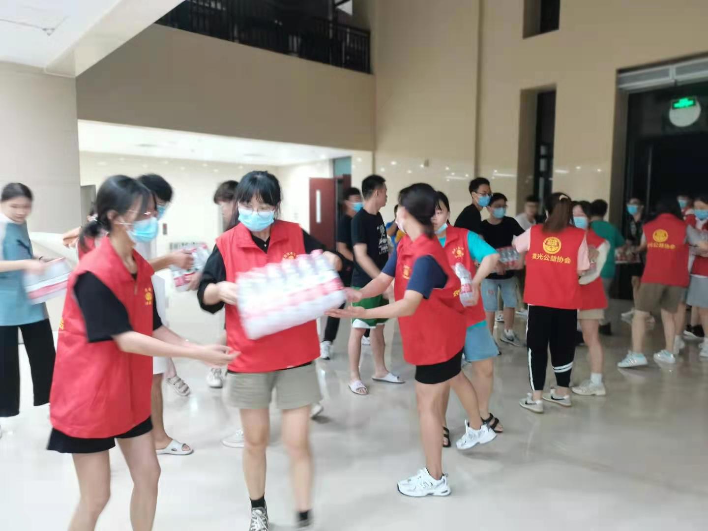 7月24日凌晨我院师生志愿服务队兵分两路。一路由团委副书记陈桃带队于凌晨两点半在学校指定地点集合,和校内兄弟院系一起组成人型传送带,对来自武汉的1500件、每件重达20多斤的“长江救援水”进行支援接力。另一路由焦雪猛老师带队于五点半出发前往商都路郑州市公安局经侦支队等待由“善行团”送来的大批救援物资。师生们按照计划安排执行任务。他们积极维持现场秩序,合理分工,确保搬卸工作的效率与安全。通过搬卸和运输,志愿者们合理有序的接收、摆放以及下发救援物资,为受灾人员的健康与安全提供了保障。从凌晨到拂晓,从黑夜到黎明,我院学子闻令而动、倾力而出,巾帼不让须眉,以实际行动展现出当代大学生的使命担当。
