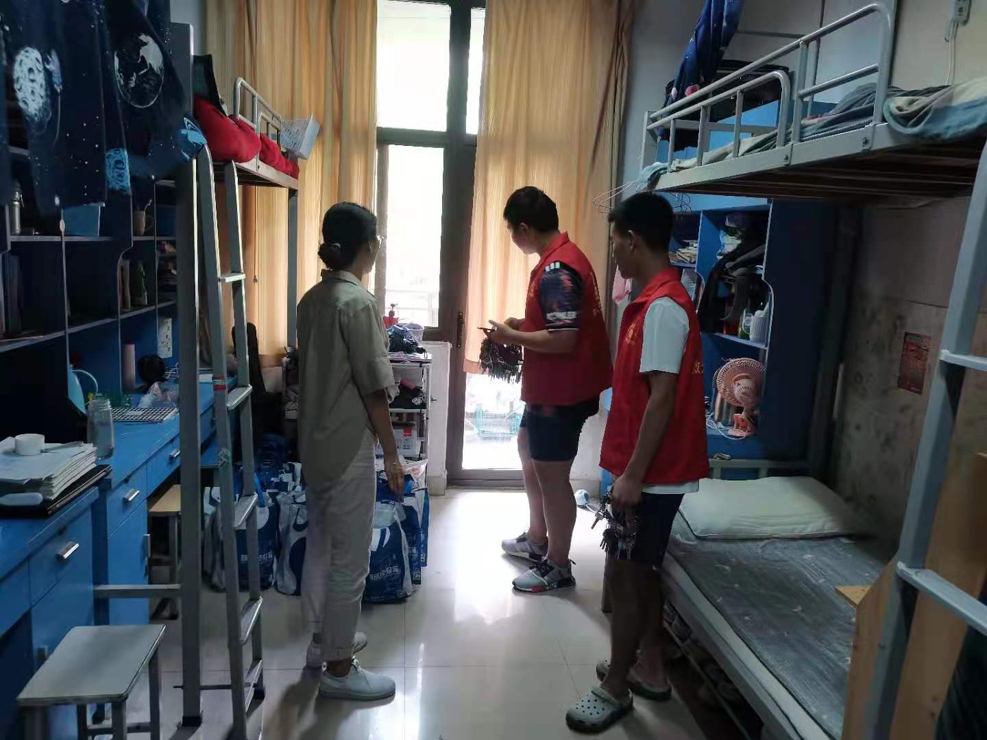 与此同时,当天上午9点,学院志愿者队伍在团委副书记陈桃带领下,对离校学生的学生宿舍逐一排查,确保室内无积水、无安全隐患。