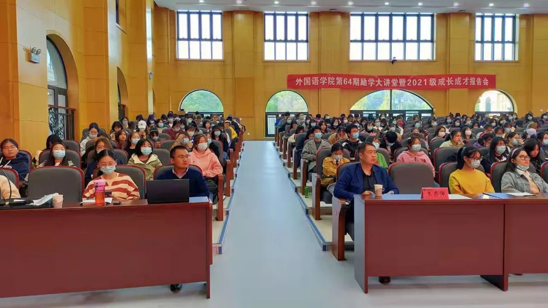 于龙子湖校区图书馆报告厅举办了第64期励志大讲堂。我院诚邀河南中医药大学护理学院刘晓辉教授为我院21级学子作以“礼赞青春成长,护航建党百年”为主题的教育专题报告会,本次报告会由院党委副书记王启佩主持,院团委副书记陈桃、冯超携全体本科和研究生新生出席会议。