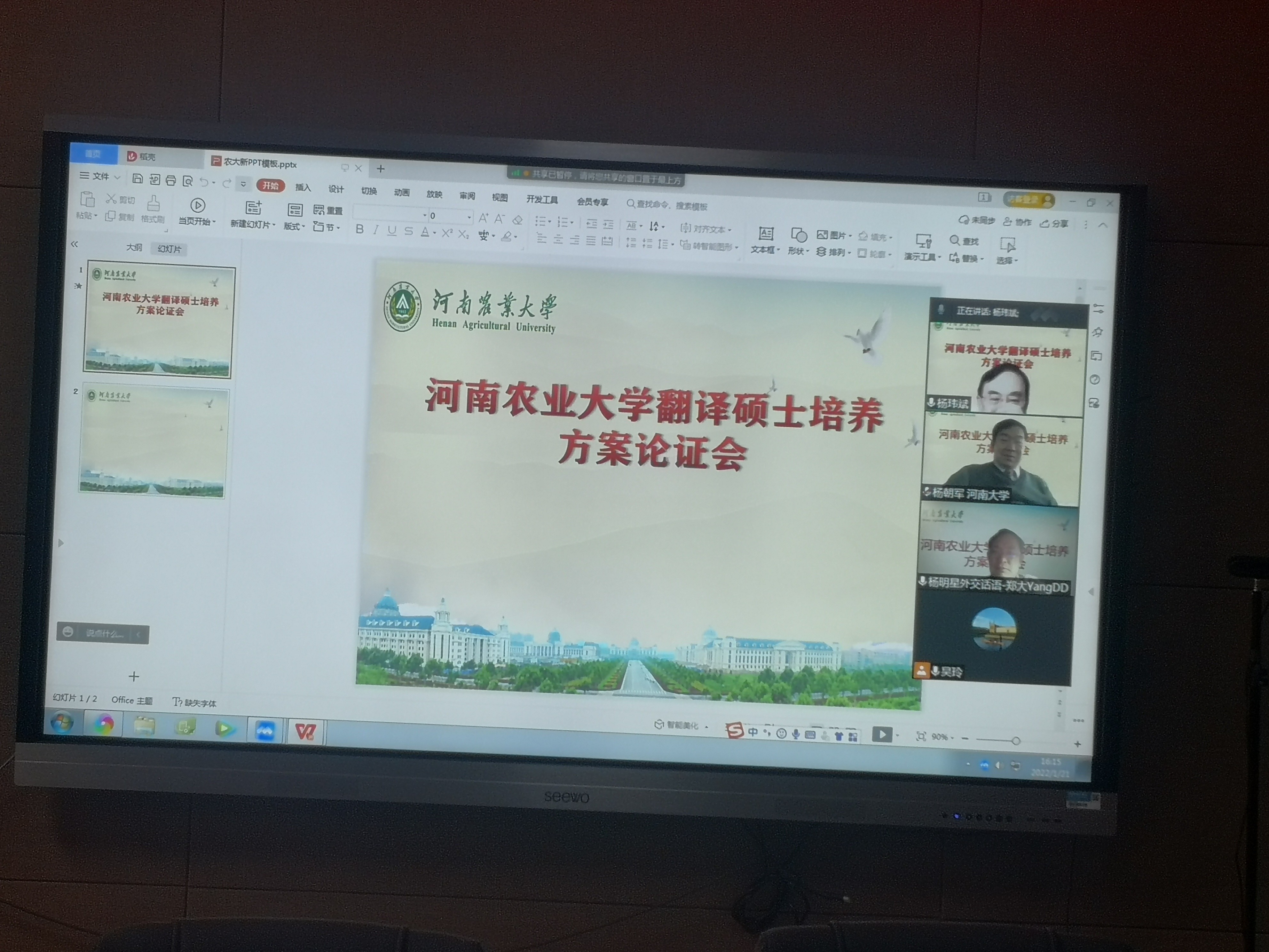(通讯员:马孝幸)日前,翻译硕士专业学位(简称MTI,下同 )研究生培养方案修订论证会在繁塔楼A320会议室举行。河南省委外事办原一级巡视员、副主任杨玮斌、河南大学外语学院院长杨朝军教授、郑州大学中国外交话语研究院院长、杨明星教授担任论证会专家成员。纵横中文网 院长张俊杰、副院长张卫东、部分导师代表和MTI中心负责人参加,会议由张俊杰主持。会议采取线上线下相结合的方式进行。