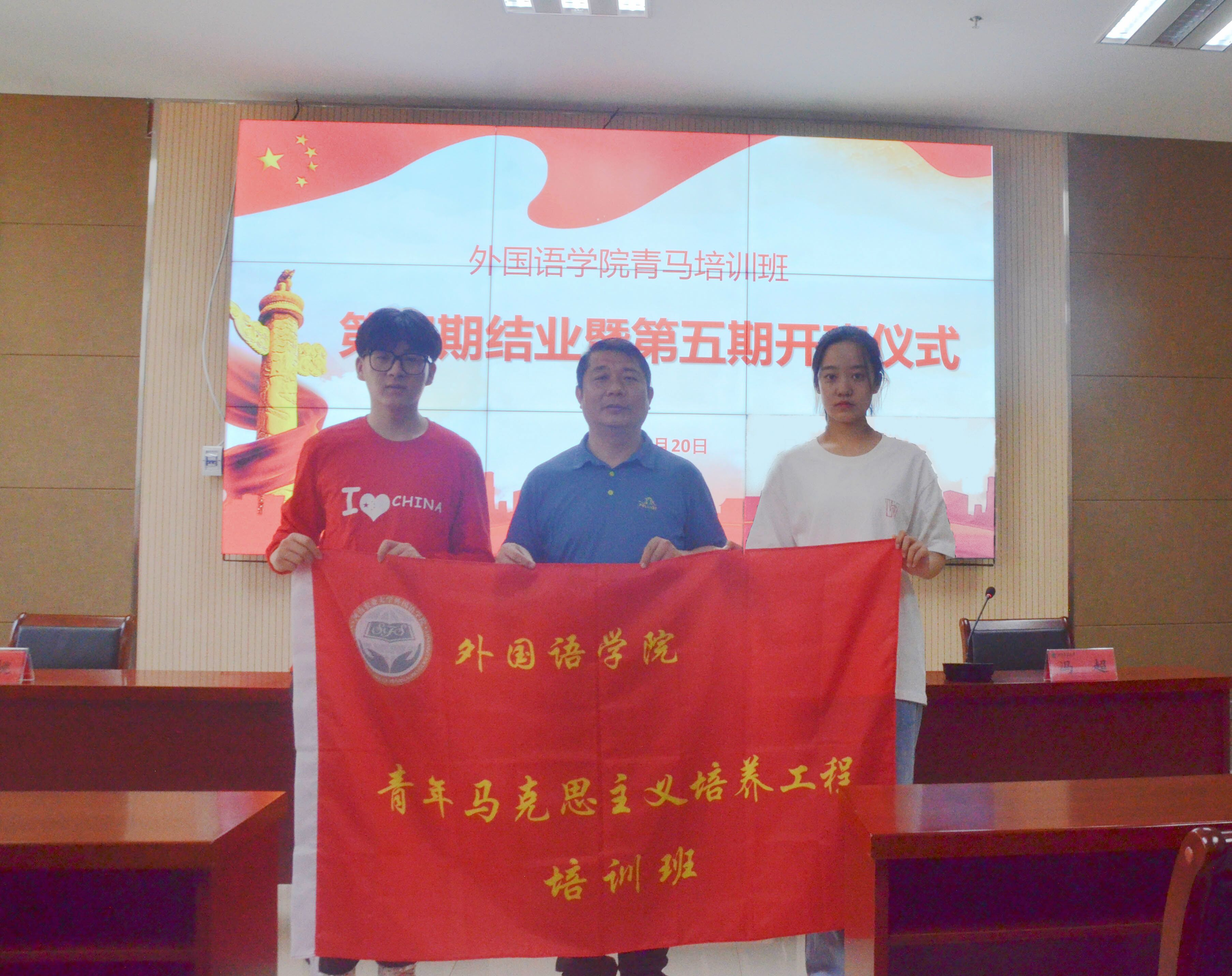 随后,邓振营为第五期青马学员进行授旗,并对第五期青马班学员提出几点希望: 一是要坚定理想信念,自觉听党话、跟党,要树牢“四个意识”、坚定“四个自信”、坚决做到“两个维护”;二是要加强学习积累,求真学问、练真本领,成长为堪当推动社会发展重任的栋梁之材;三是要矢志艰苦奋斗,敢于争先锋、当模范,要成为校园文化建设的积极参与者、精神文明建设和和谐校园建设的主力军。