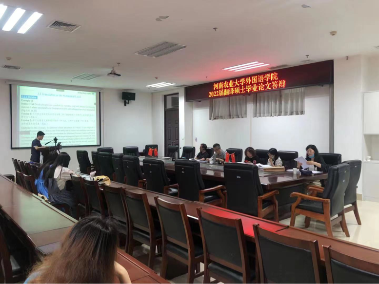 (通讯员:马孝幸)5月28日,我院通过线上线下相结合的方式组织开展了2022届翻译硕士论文答辩工作。本次答辩特邀河南大学教授杨朝军、郑州大学外国语与国际关系学院王志伟教授、河南师范大学教授赵文静担任答辩主席,张俊杰院长、李喜芬、张明玺、陈洁、李永红、张冬梅等硕士生导师担任答辩委员,2022届硕士研究生参加本次答辩,2021级硕士研究生同时参与观摩。