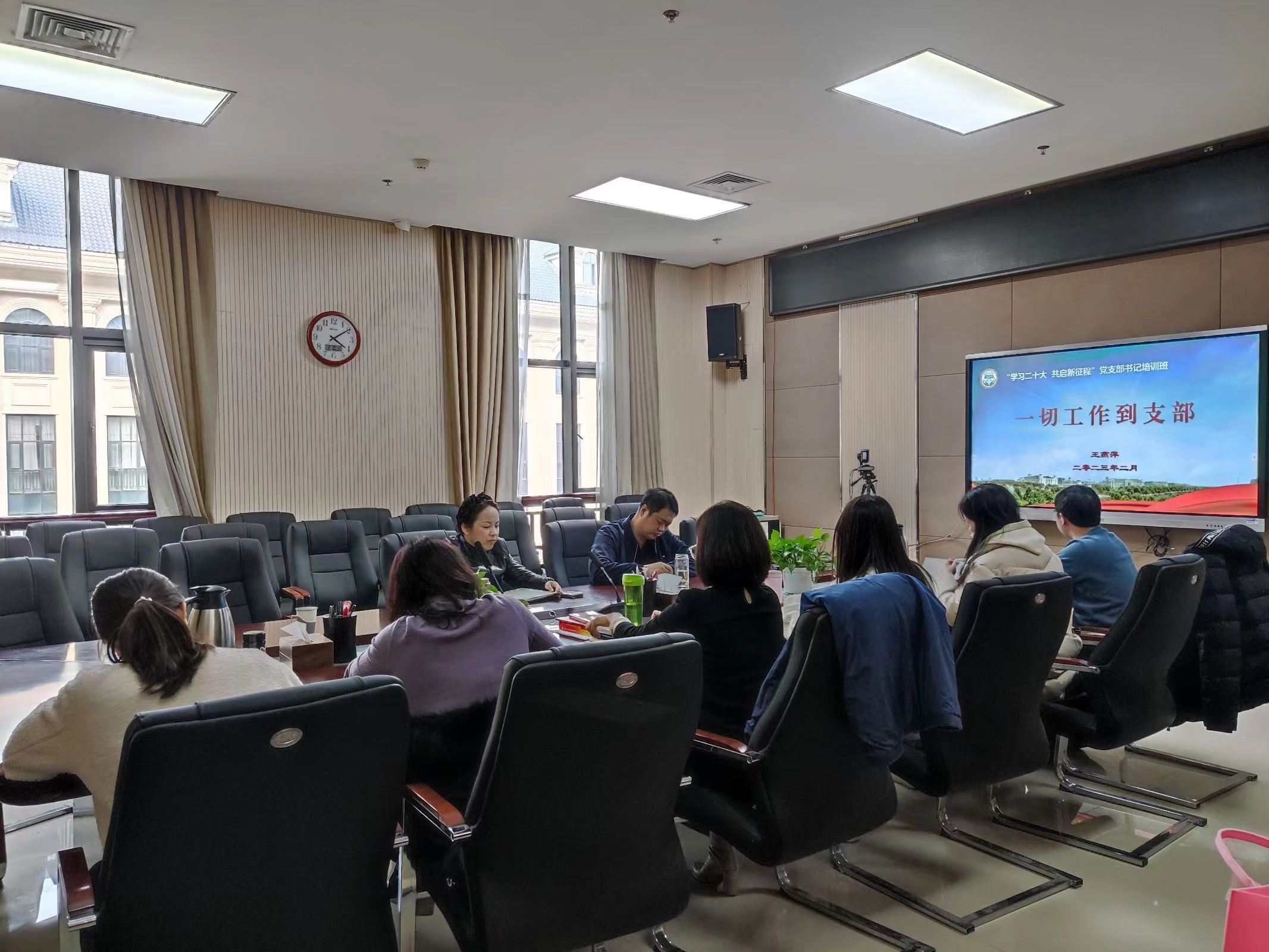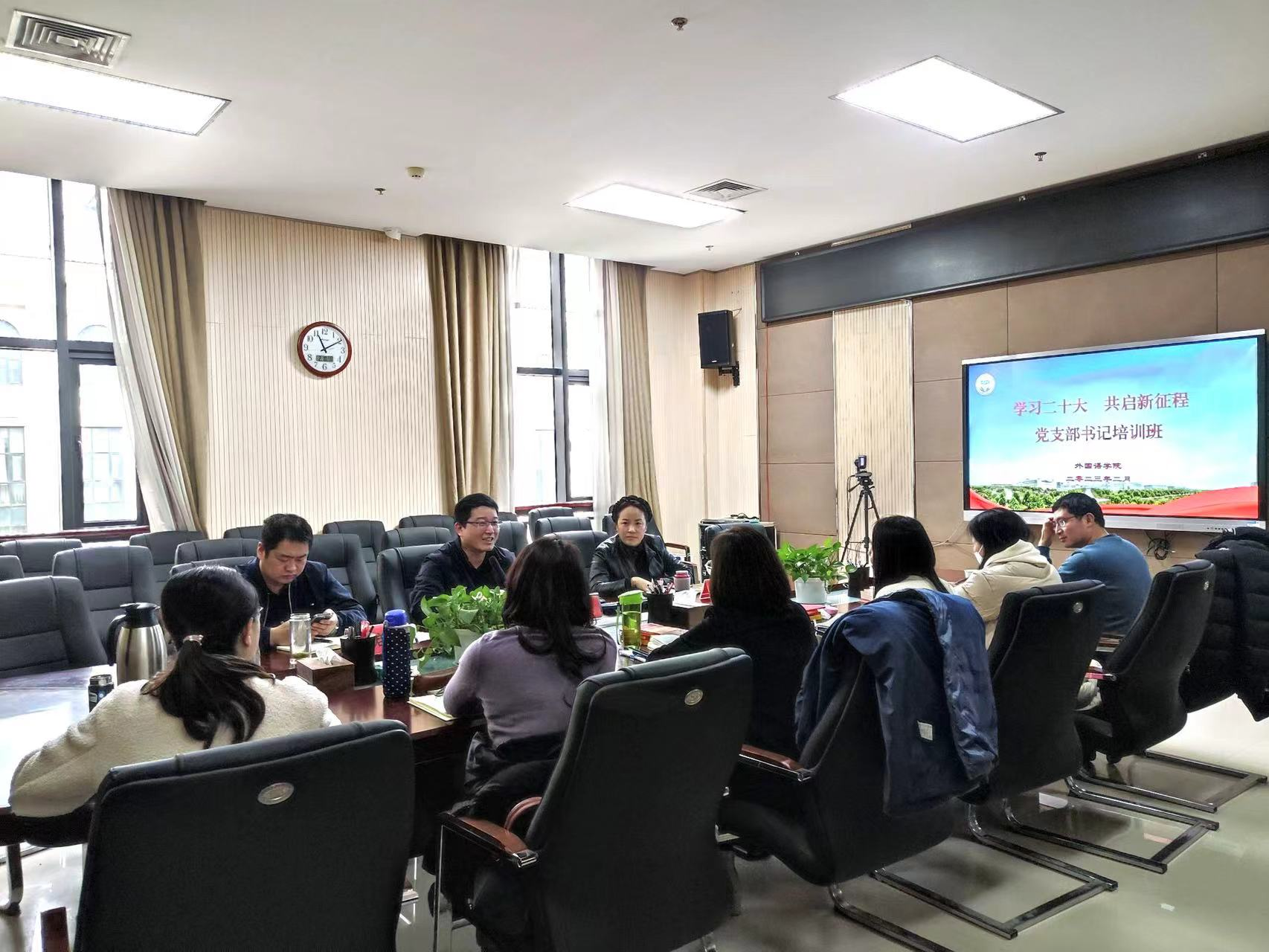 本网讯(审稿:王启佩 供稿:陈桃 武宗励)为深入学习贯彻党的二十大精神,不断提高党支部书记队伍的党性修养和工作水平,进一步增强基层党组织的组织力、凝聚力和战斗力。2月9日,纵横中文网 在龙子湖校区繁塔楼A320会议室举办“学习二十大 共启新征程”党支部书记培训班。院党委书记王燕萍携全体教工党支部书记和部分学生党支部书记参加培训,活动由院党委副书记王启佩主持。