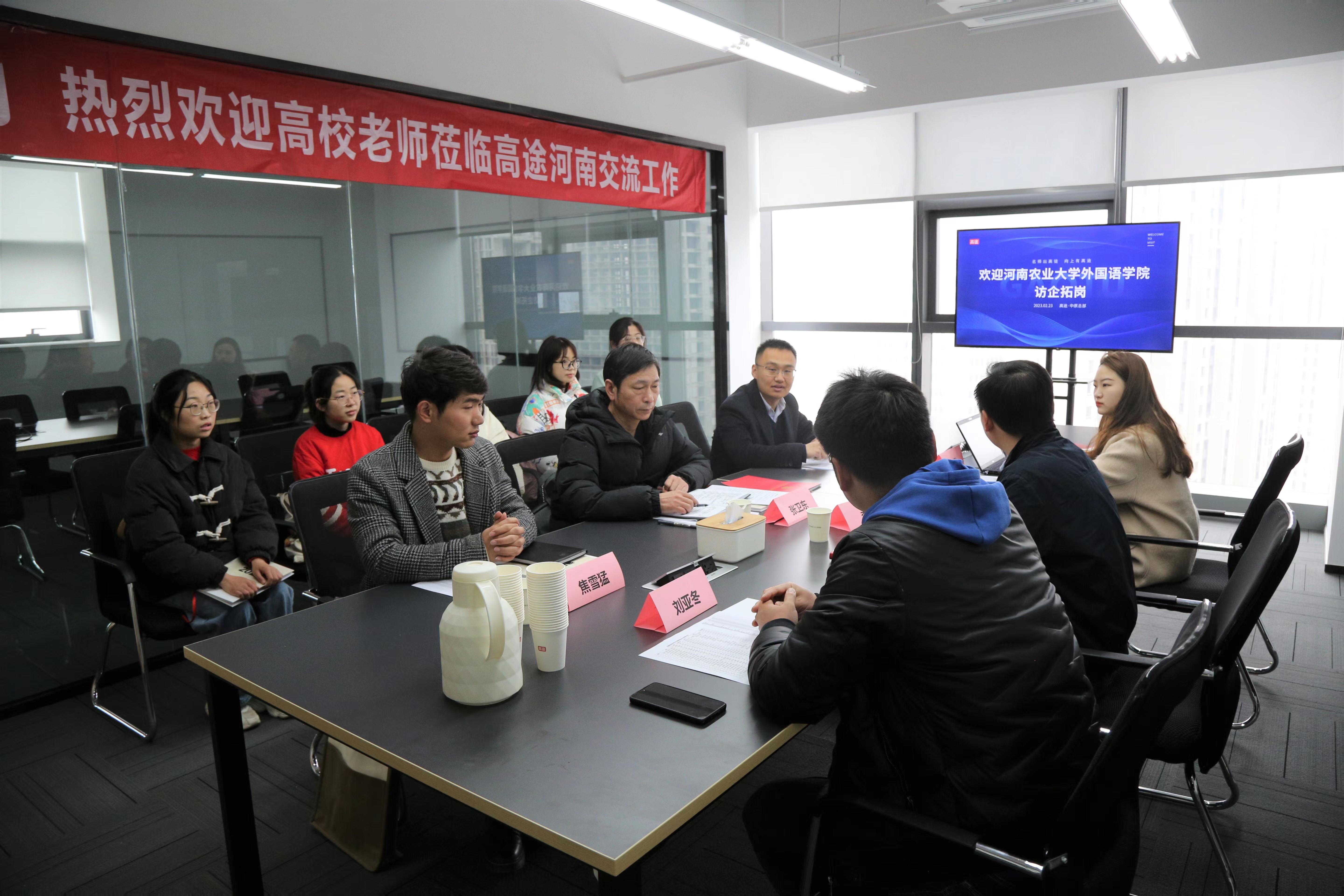 (本网讯 供稿:冯超 审稿:王启佩)2月23日上午,副院长张卫东带领党政办、团委相关负责同志和2023届毕业生代表前往郑州高途云集教育科技有限公司(以下简称郑州高途公司)开展访企拓岗促就业暨实习就业基地签约活动。高途河南人力资源总监李冲及相关负责人参加活动。