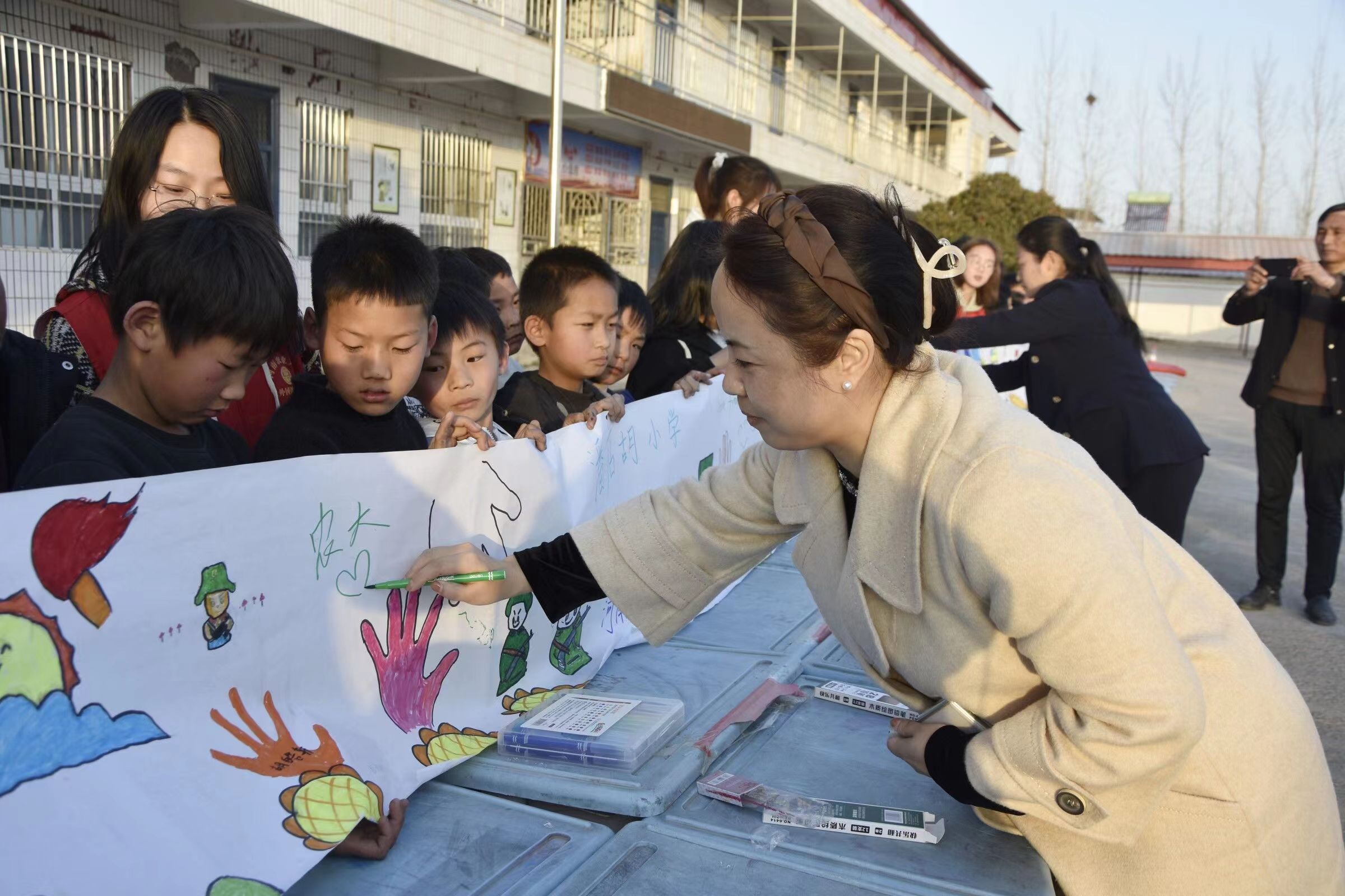 志愿者们还带领小朋友们一起同绘一幅画——“我心中的雷锋”,数十位小画家手握画笔,在十米长卷上全身心地投入到创作中。可爱卡通的雷锋造型,手拉手传递雷锋精神的掌印......孩子们用手中的画笔、五彩的颜色一点一点描绘着各自心中的雷锋,在欢笑中了解雷锋精神、践行雷锋精神,增强主人翁意识。