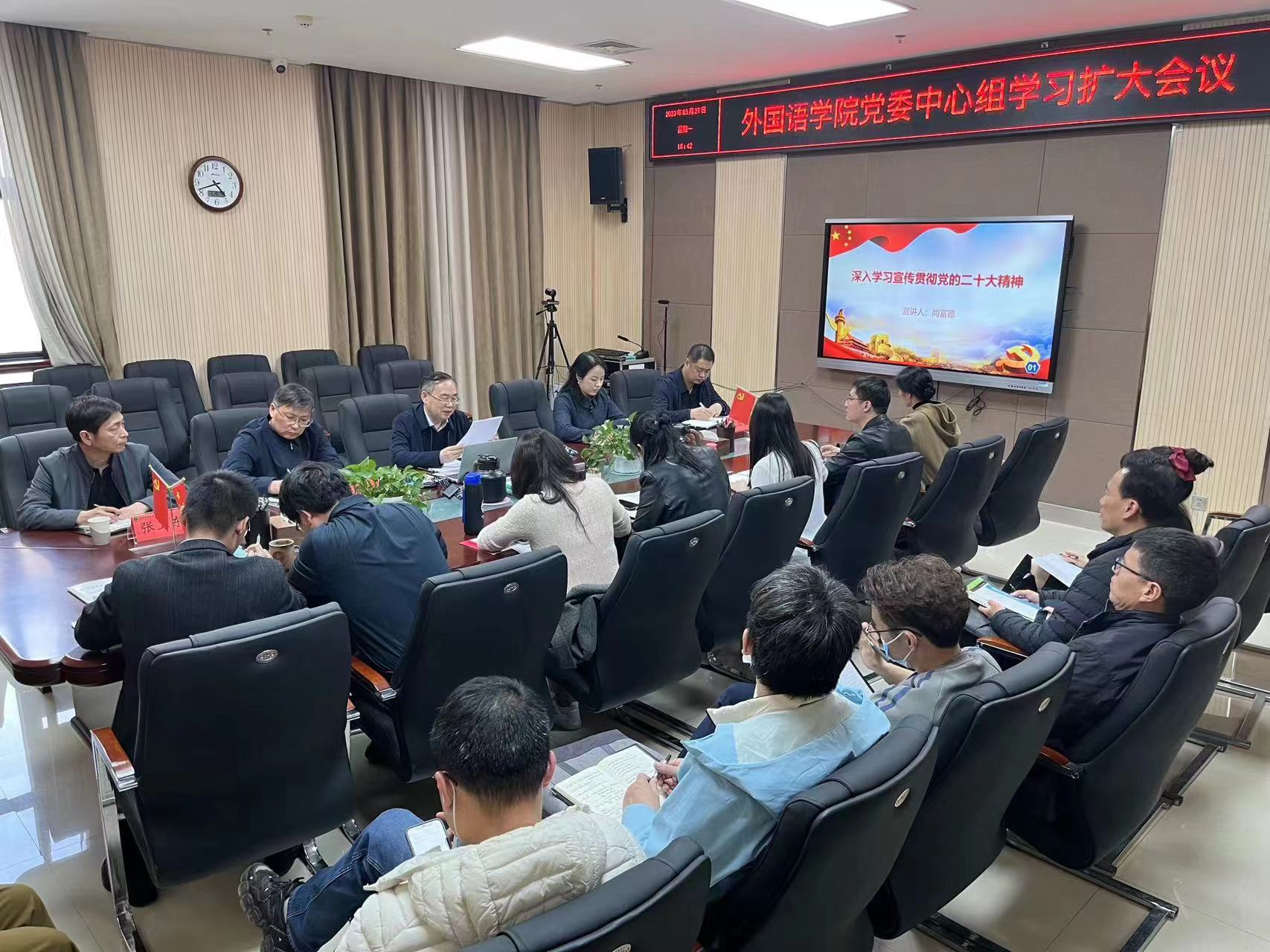 本网讯(审稿:王启佩 供稿:冯超)为深入学习贯彻党的二十大精神,引导全体师生员工把思想和行动统一到党的二十大精神上来,将力量凝聚到党的二十大确定的各项任务上来。3月27日下午,外国学院召开党委中心组学习扩大会议,副校长尚富德以《深入学习贯彻党的二十大会议精神》为题作党的二十大精神宣讲。纵横中文网