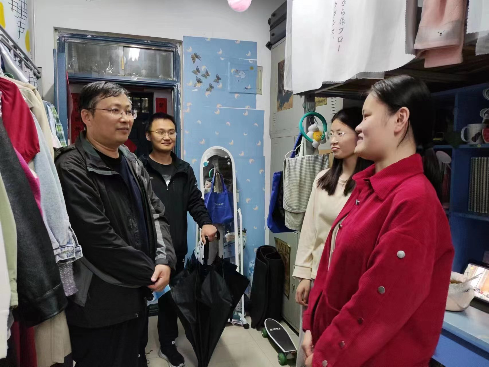 5月3日下午,院长张俊杰走访学生宿舍,看望慰问返校学生,实地了解学生学习、生活等情况,并向他们致以节日的问候。在走访宿舍过程中,张俊杰亲切地与学生进行交流,叮嘱大家增强安全防范意识,整理好内务,注重个人卫生和宿舍环境卫生,并不断提醒同学们要时刻注意人身财产安全,调整好心态,合理作息,以饱满的热情投入到接下来的学习生活中去。