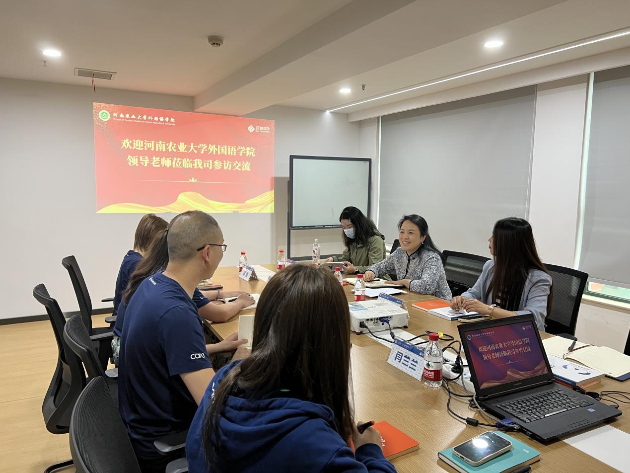 启德教育郑州分公司总经理桓菁女士对王燕萍一行的到访表示热烈的欢迎,并就启德教育发展规模、公司战略、出国留学情况、各留学项目优势及高校合作情况向王燕萍书记一行做了详细介绍。