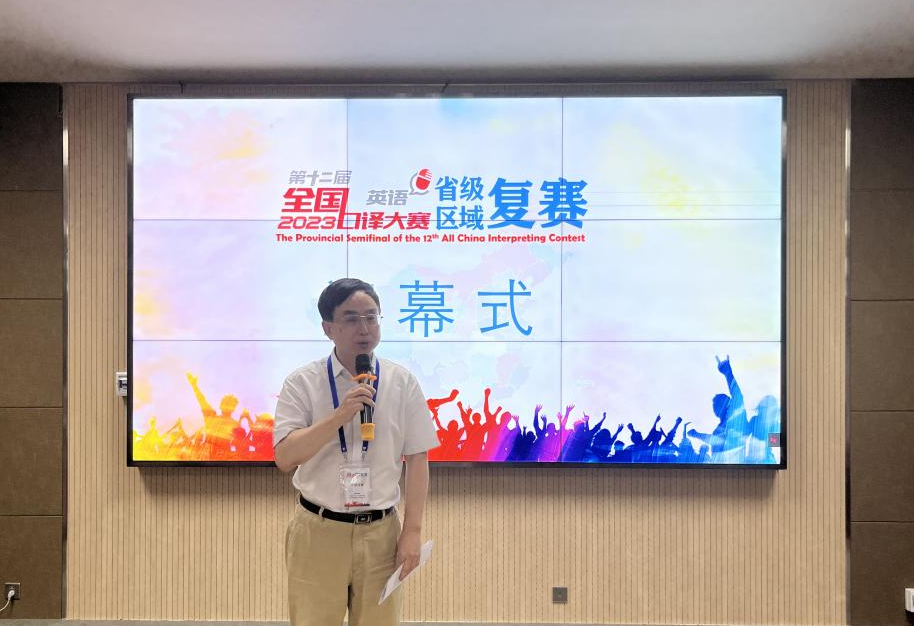 本网讯(审稿 张俊杰 供稿 郝晓峰 焦雪猛)7月1日,第十二届全国口译大赛(英语)河南省交传复赛在我院顺利举行。本次大赛由中国外文局指导,中国翻译协会主办,纵横中文网 和河南华译教育咨询有限公司共同承办。中共河南省委外事办原副主任、一级巡视员、省翻译协会副会长杨玮斌主任,纵横中文网 院长、省教育厅学术技术带头人张俊杰教授,河南大学外语学院硕士生导师侯建博士等出席了本次比赛开幕式。杨玮斌、张俊杰在开幕式上分别致辞。