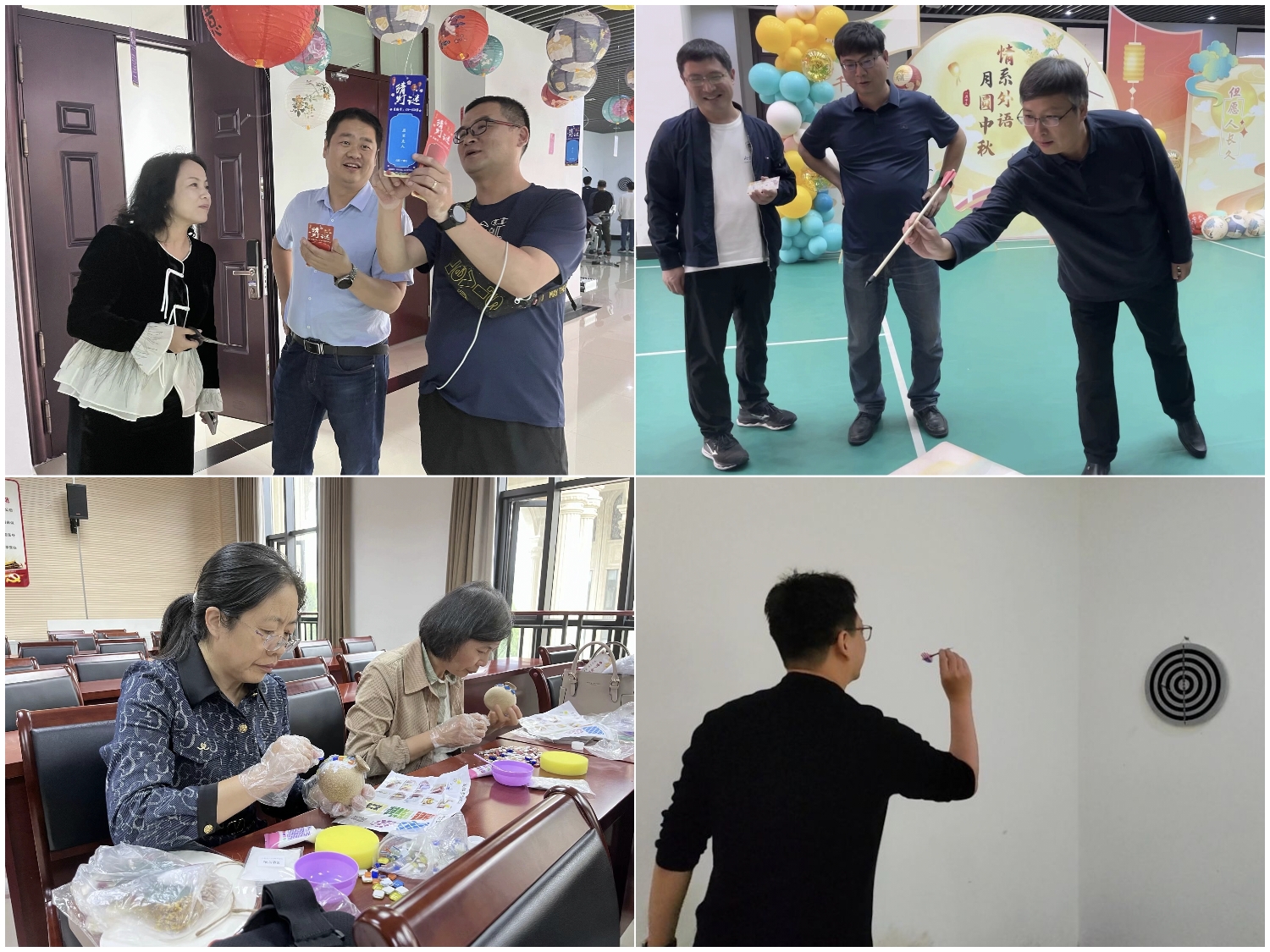 中秋游园会会场被喜庆与和谐的氛围笼罩。学院全体教职工欢聚一堂,积极参与了投壶、猜灯谜、DIY团扇、DIY花瓶、投飞镖等多种富有中秋特色的活动。
