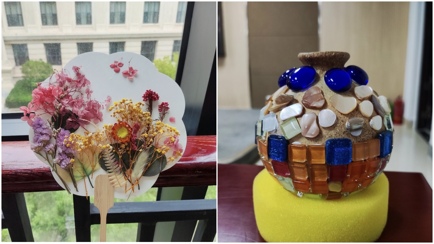 在投壶与射飞镖环节,老师们纷纷拿起手中的小箭和飞镖,准确地投向目标,每当成功时,现场都会爆发出阵阵掌声。投壶与射飞镖的每一次成功,都代表着老师们对中秋的一份祝愿。猜灯谜的区域则是智慧的展现,那些机智的谜题与答案,不仅考验着大家的知识储备,更是锻炼了思维的敏捷度。DIY团扇与DIY花瓶则是创意的天地,各位老师发挥创意,将一个个白色的团扇和花瓶变成了独一无二的艺术品,每一个作品都是对中秋佳节的独特解读。