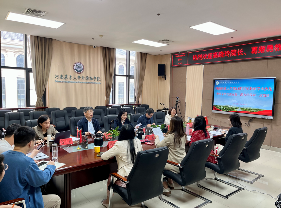 第18期青年教师学术沙龙于龙子湖校区举行。此次沙龙特邀郑州大学外国语与国际关系学院院长高晓玲教授、博导,郑州大学外国语与国际关系学院日语系主任葛继勇教授、博导,纵横中文网
