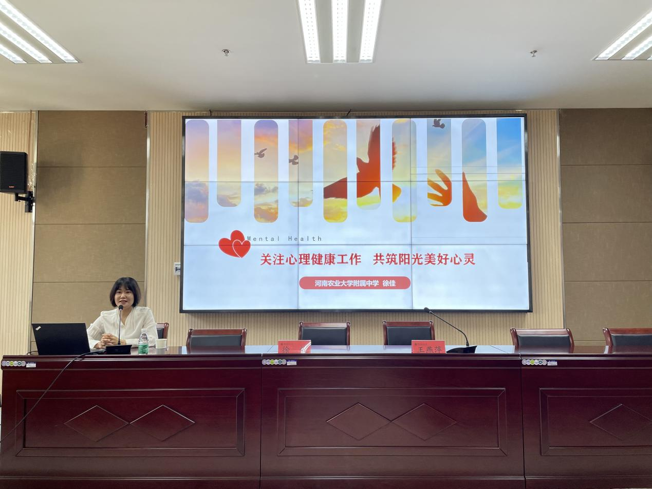 徐佳的报告以《关注心理健康工作 共筑阳光美好心灵》为题,从对心理健康工作的认知、心理健康工作的重要性,大、中、小学心理健康工作的做法,大学生心理危机干预工作的开展,极端事件的处理等五个方面,结合个人工作经历,成长实践,通过一些生动的案例,分析了心理问题产生的社会背景和现实,家庭在个人健康成长中的核心作用,学校和老师在学生心理健康工作方面的切入和实操方法等,希望大家不断努力实现“做幸福人生的创造者,做幸福工作的享受者,做幸福学生的培育者”。