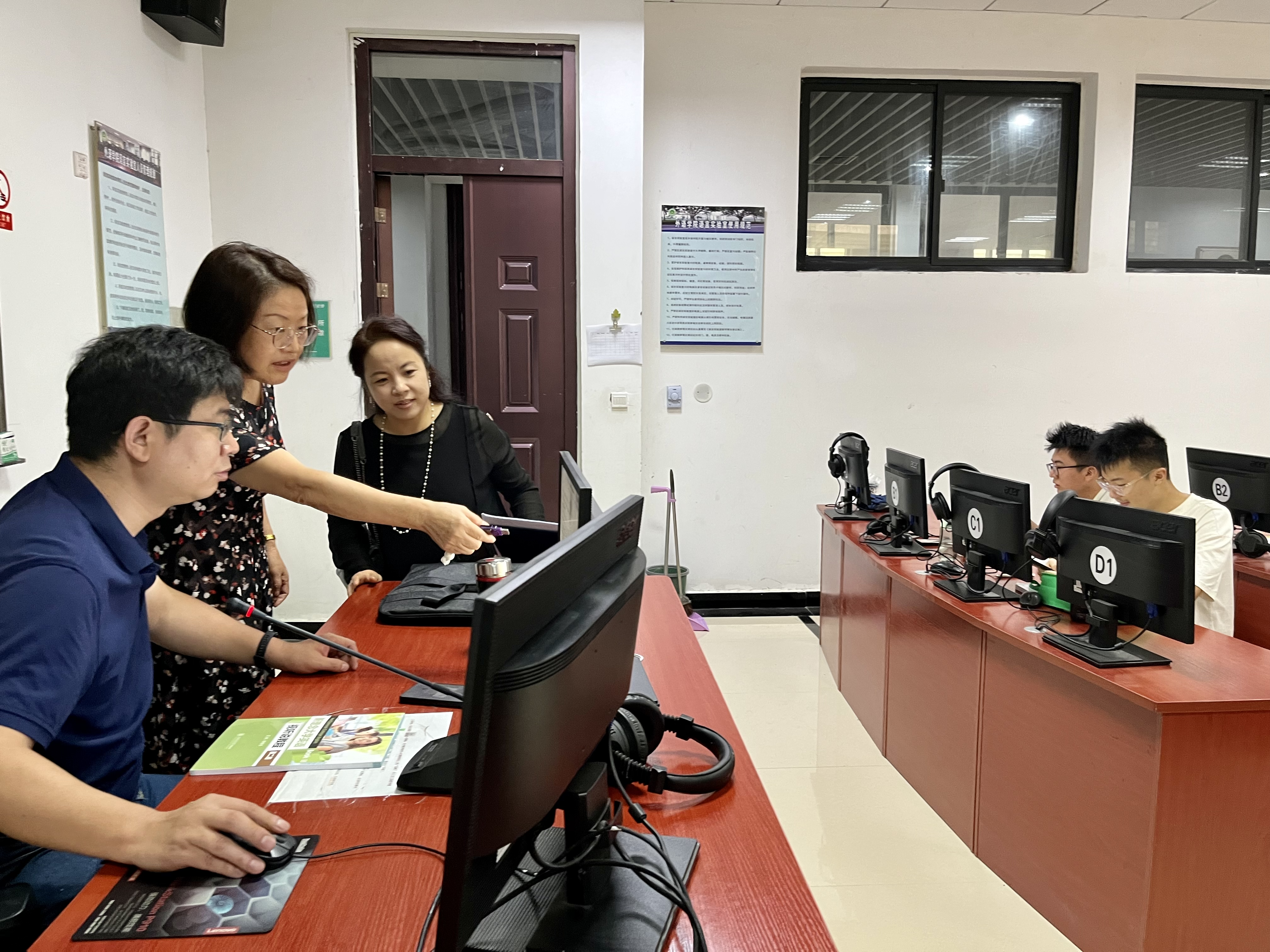 党委副书记杨鑫巡视公共课语音室准备情况