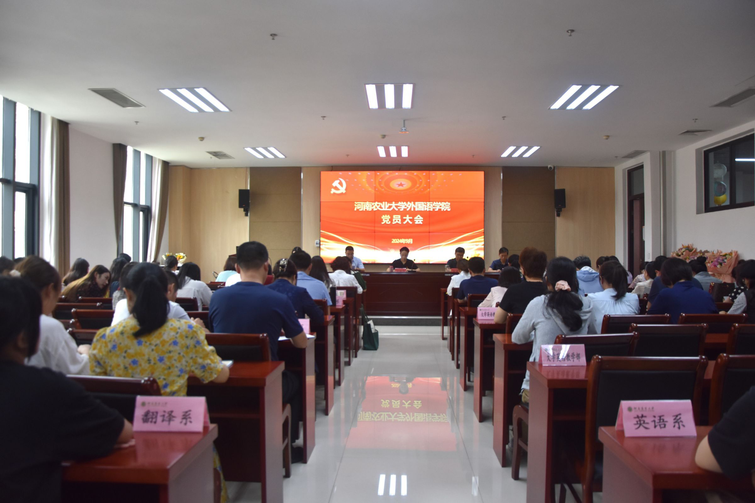 在繁塔楼A324召开党员大会,院党委书记王燕萍、院长张俊杰携全体领导班子成员出席会议,学院全体党员参加会议。会议由院党委副书记杨鑫主持。