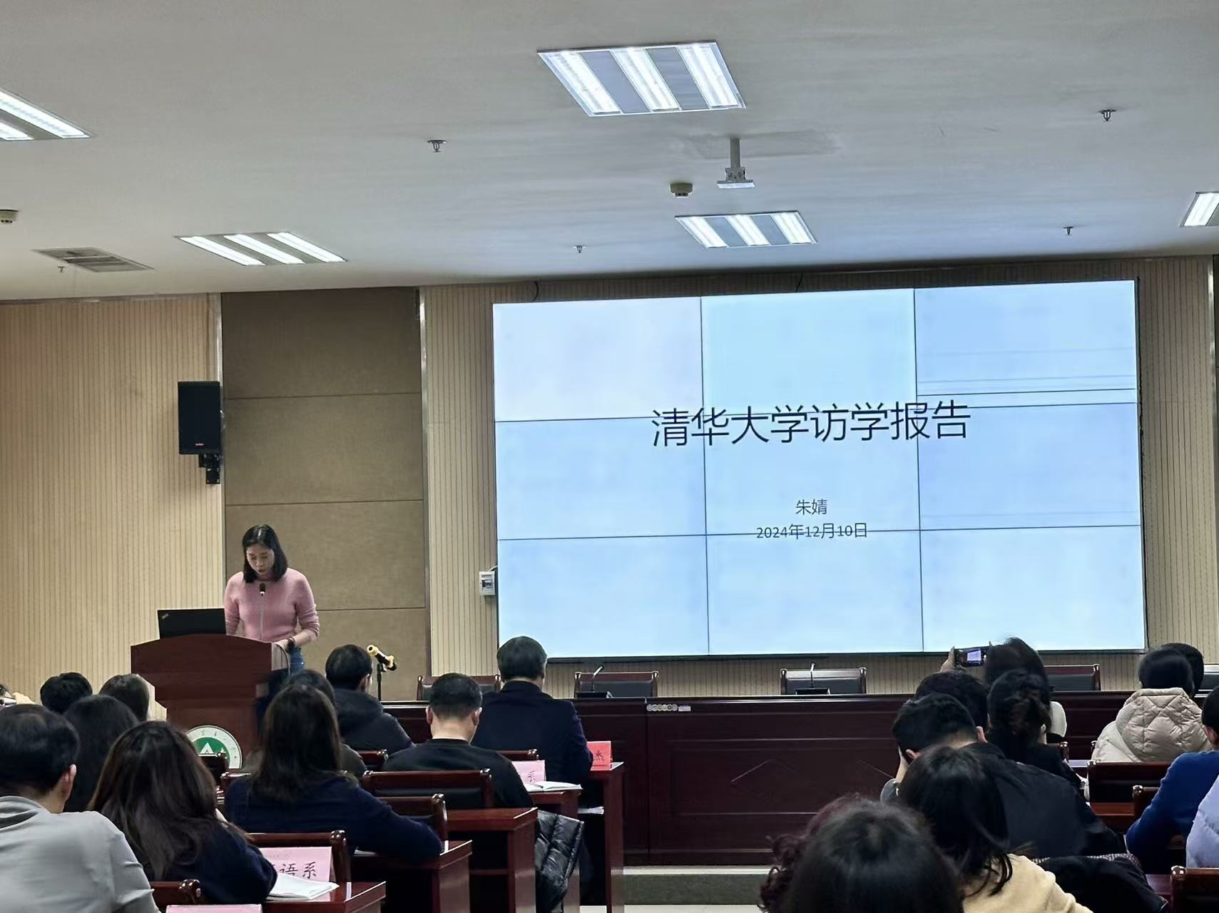 于繁塔楼A324举办了教师访学分享会,邀请从日本早稻田大学访学归来的邱丽君老师和从清华大学访学归来的朱婧老师做了访学报告。学院全体教职工参加会议。会议由院长张俊杰主持。