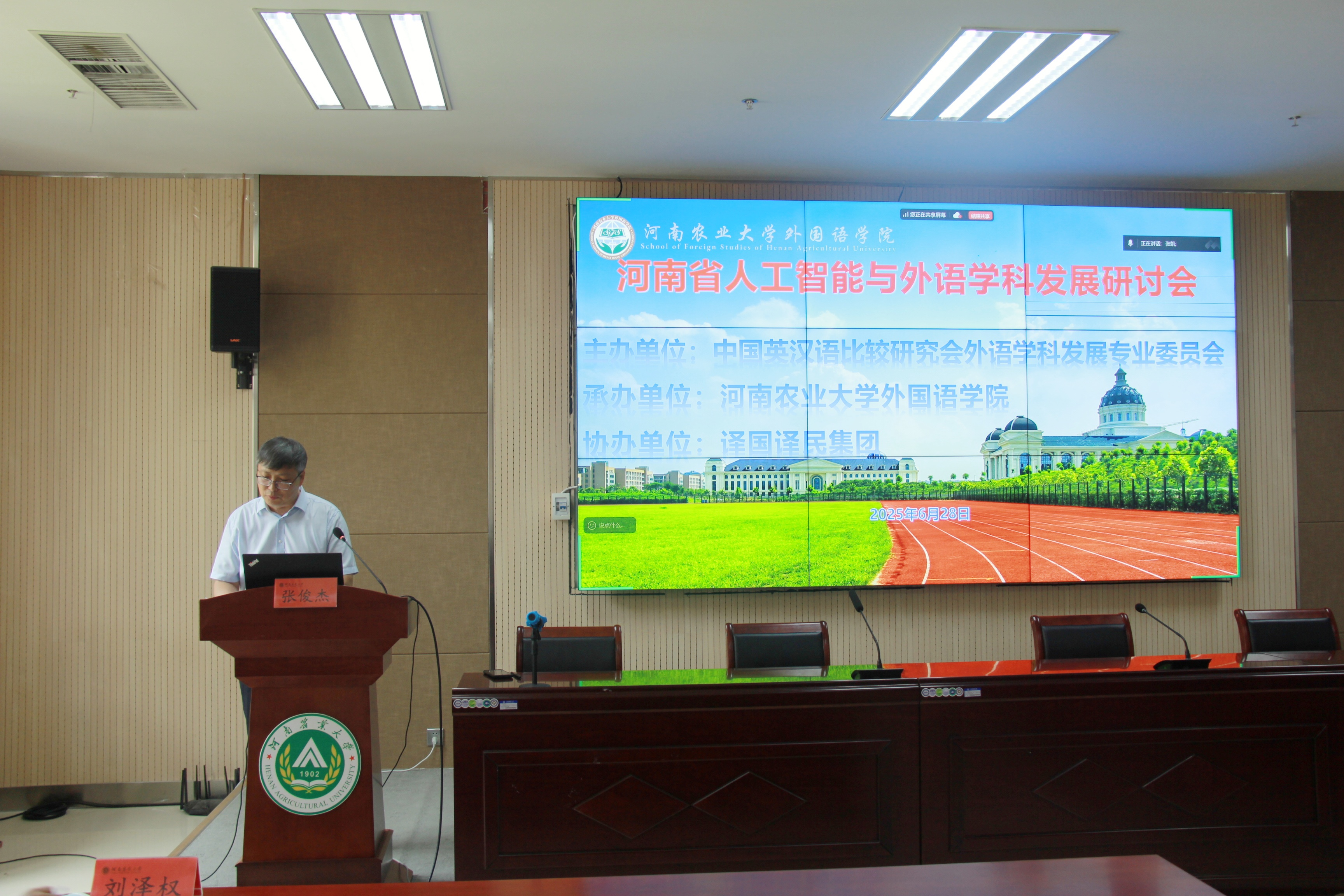 承办、译国译民集团协办。本次会议邀请了教育部“长江学者”特聘教授、上海外国语大学校长助理、语言科学研究院院长、博士生导师胡开宝教授;河南大学“黄河学者”特聘教授、博士生导师刘泽权教授;上海人工智能实验室生态与运营副总监韩冰女士;上海人工智能实验室王莎莎助理研究员;上海外国语大学语言科学研究院助理研究员李晓倩博士,以及河南高校外语学院院长等各位同仁。会议采用线上和线下方式进行。