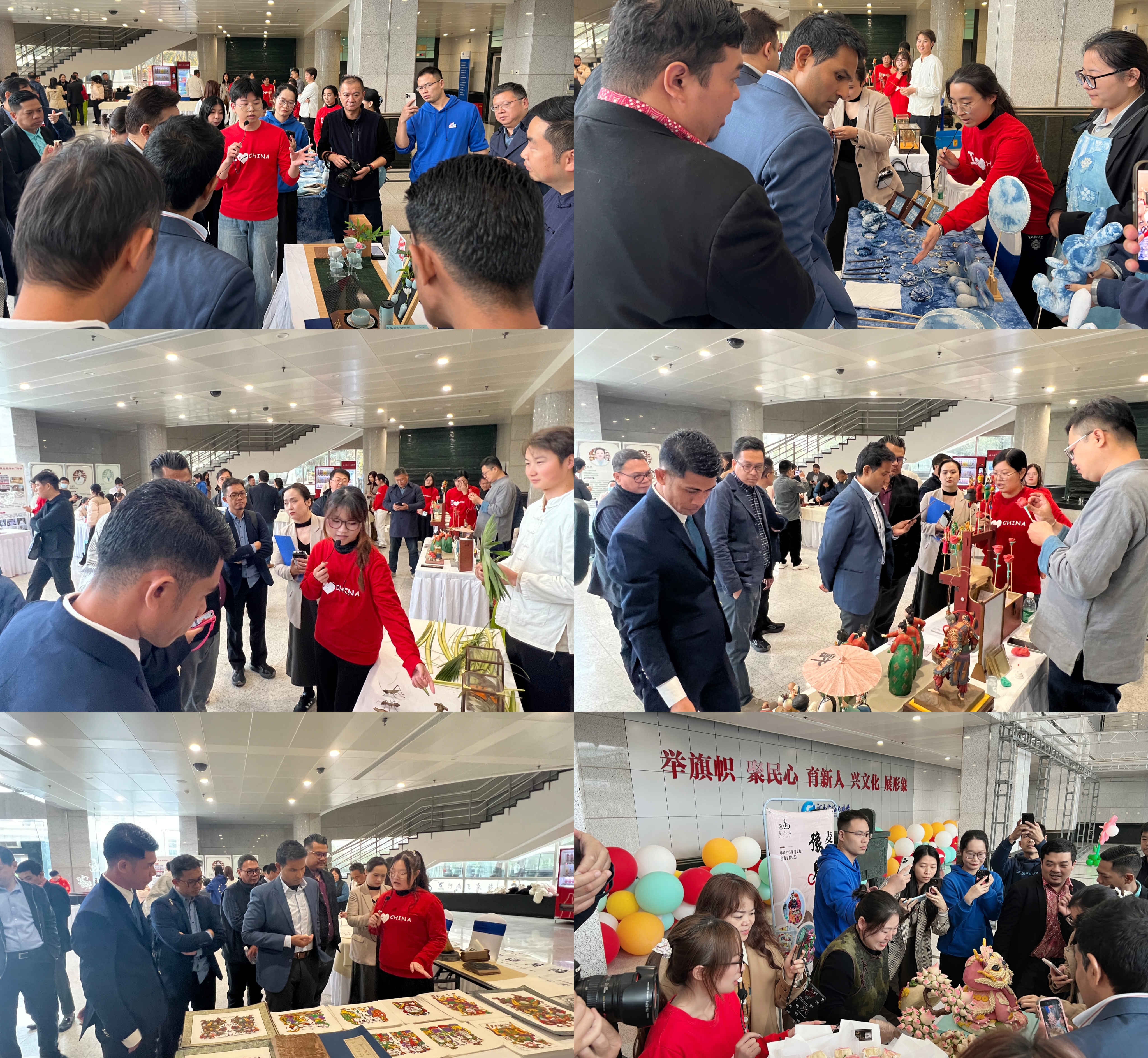 本次活动由河南省委外办与河南广播电视台联合举办,邀请了来自15个亚洲国家的近20位优秀媒体负责人、意见领袖到场参观体验。活动以“非遗文化体验与传播”为主题,设置了包括中医、书法、面塑等在内的十个特色展位。我院志愿者们以流利的英语表达、自然的沟通技巧和热情的服务态度,为到场的外国友人进行了生动讲解与文化互动,帮助他们深入体验中原非遗的深厚底蕴与独特魅力,活动现场气氛热烈,交流融洽。