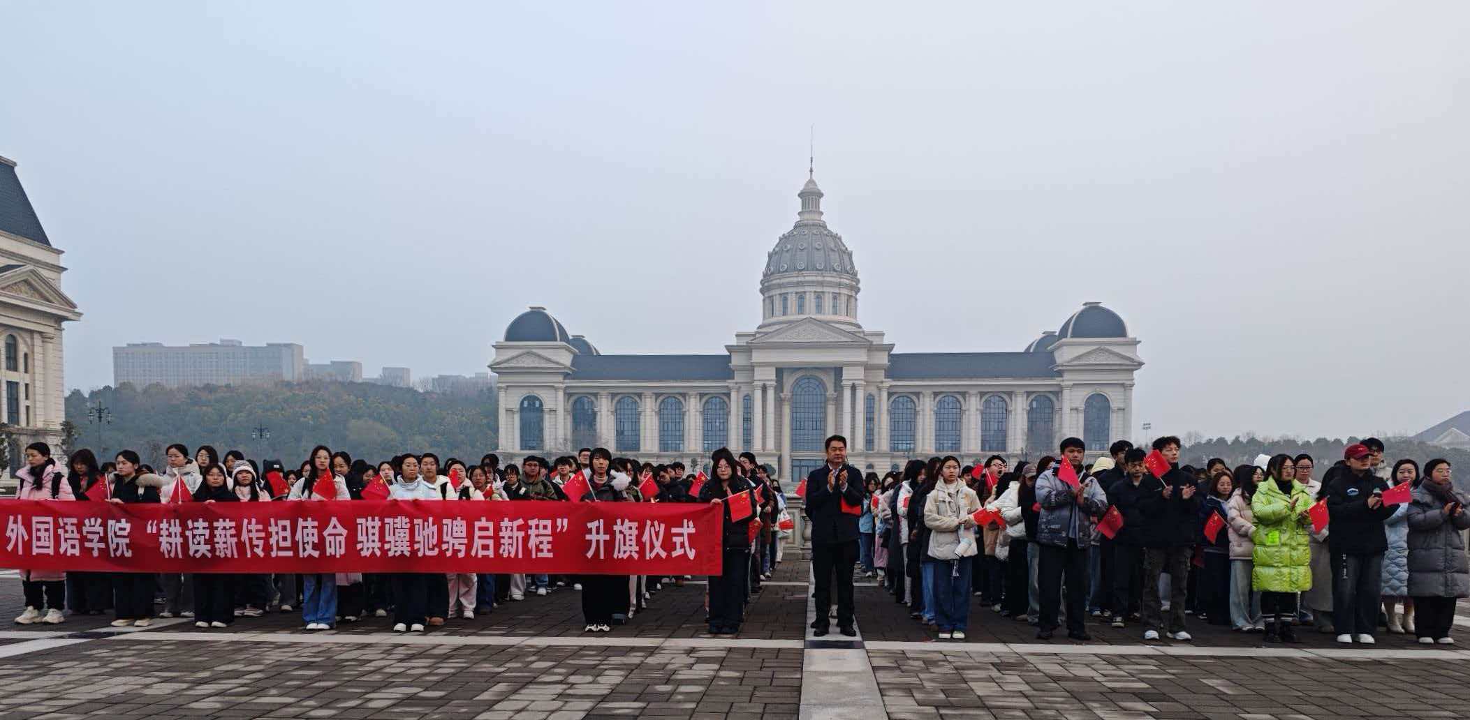 此次升旗仪式不仅是一次爱国主义教育,更吹响了新学期奋进的号角。正值学校“双一流”创建与“十五五”开局的关键节点,仪式进一步凝聚了全院师生的奋进力量,坚定了大家以外语专业所长服务国家战略、助力乡村振兴的信念,引导师生以耕读精神践行使命,以实干姿态勇毅前行。