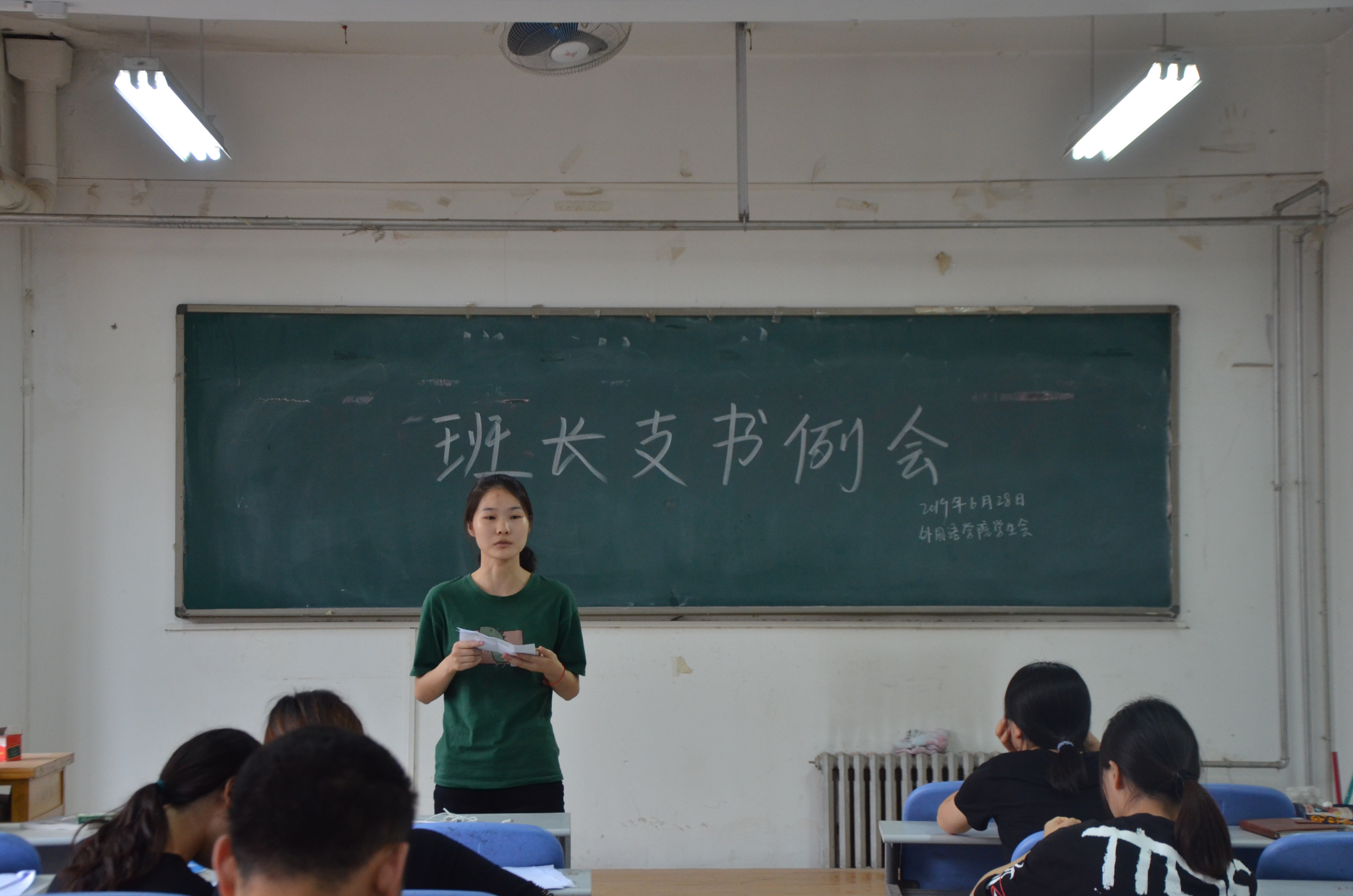 本网讯(审稿:王颖 供稿:梅如意)为了督促班级管理,加强班级建设,推动我院暑期各项工作的有序开展,6月28日下午5点,我院于龙子湖校区海棠楼202室召开了本学期第十八次班长支书例会,主要学生干部、各班班长支书及暑期各留校安全小组组长参加此次会议。