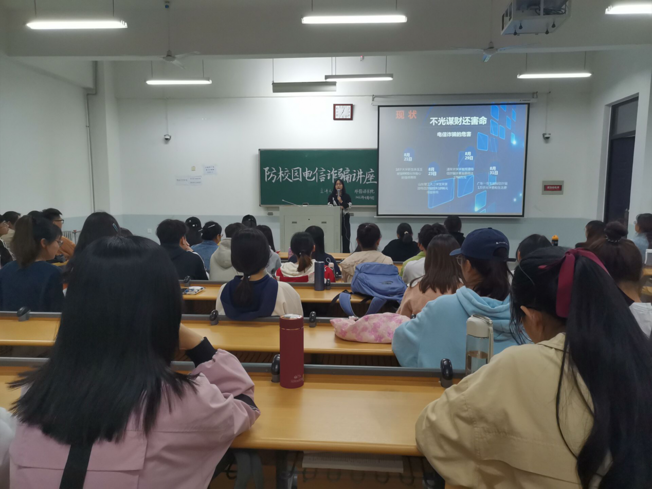 本网讯(审稿:穆君怡 供稿:王莉)为提高我院学生对电信诈骗的防范意识和识别能力,创建安全文明的学院环境,我院于4月14日晚上七点在龙子湖校区繁塔楼E202教室举办了防校园电信诈骗学习主题讲座。本次讲座由学院辅导员穆君怡主持,各班班长及团支书参加了此次讲座。