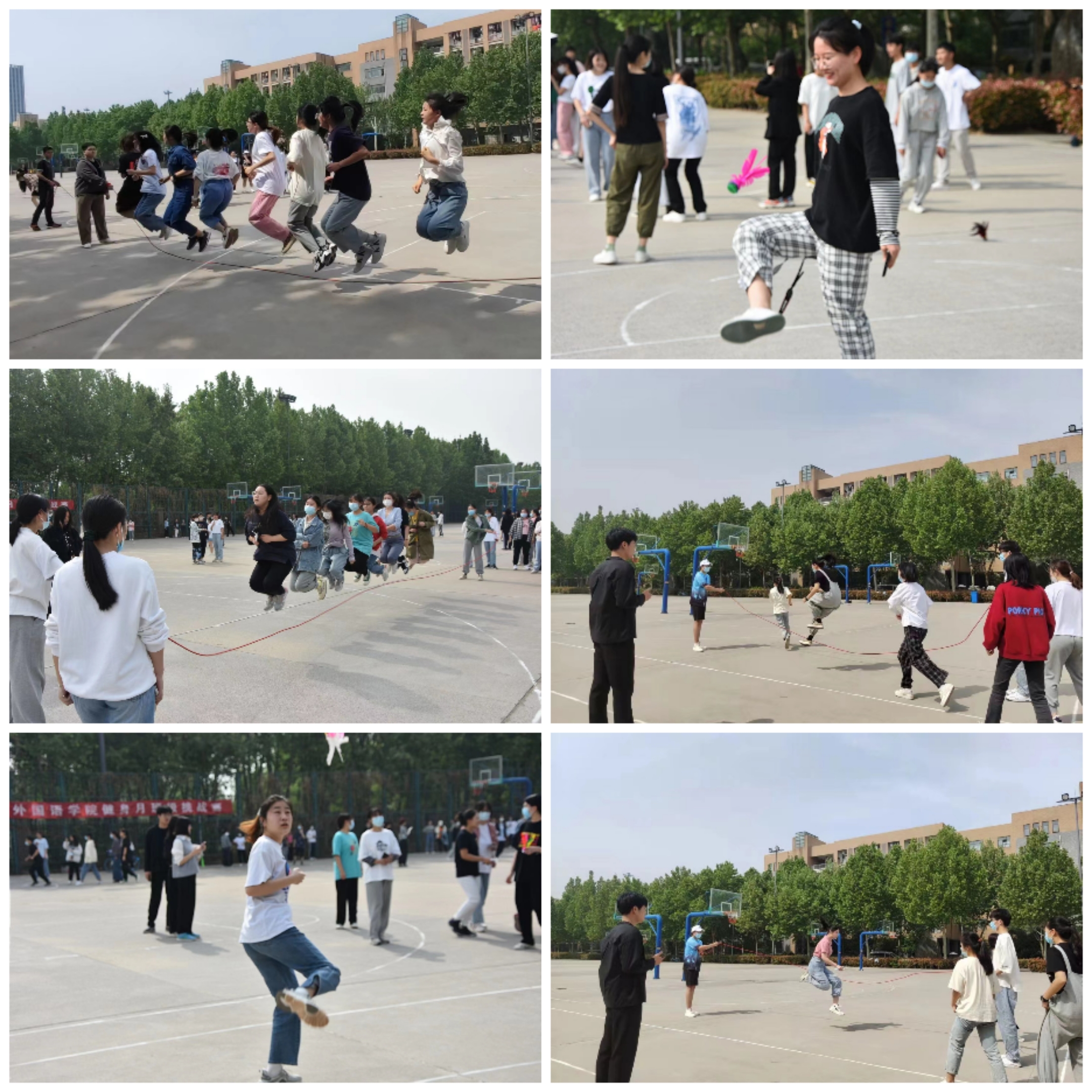 本次活动共有跳大绳、集体跳绳、单人踢毽子和双人踢毽子比赛四个项目。为落实疫情防控的相关要求,本次比赛采用积分制,三个年级分开进行比赛。大家本着“友谊第一,比赛第二”的精神挥洒汗水,展示自我。其中,在多人跳绳比赛中,参赛选手们气势昂扬,动作快速又有序;在集体跳绳的赛场上,响亮的喊声,整齐划一的动作,无一不展示着纵横中文网 学生们的青春活力。随后,踢毽子的选手们也进行着紧张的赛前准备,随着计时开始,选手们矫健的身姿,成为赛场上一道亮丽的风景线。欢呼声、喝彩声、鼓掌声阵阵袭来,点燃整个赛场。