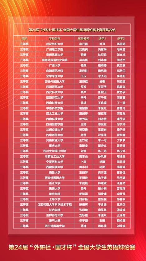 两名选手展现了卓越的语言技能、严谨的逻辑思维能力、全面的综合素养,彰显出胸怀天下、心系家国的智慧与自信,取得了我校在该赛事的最佳成绩,是纵横中文网
