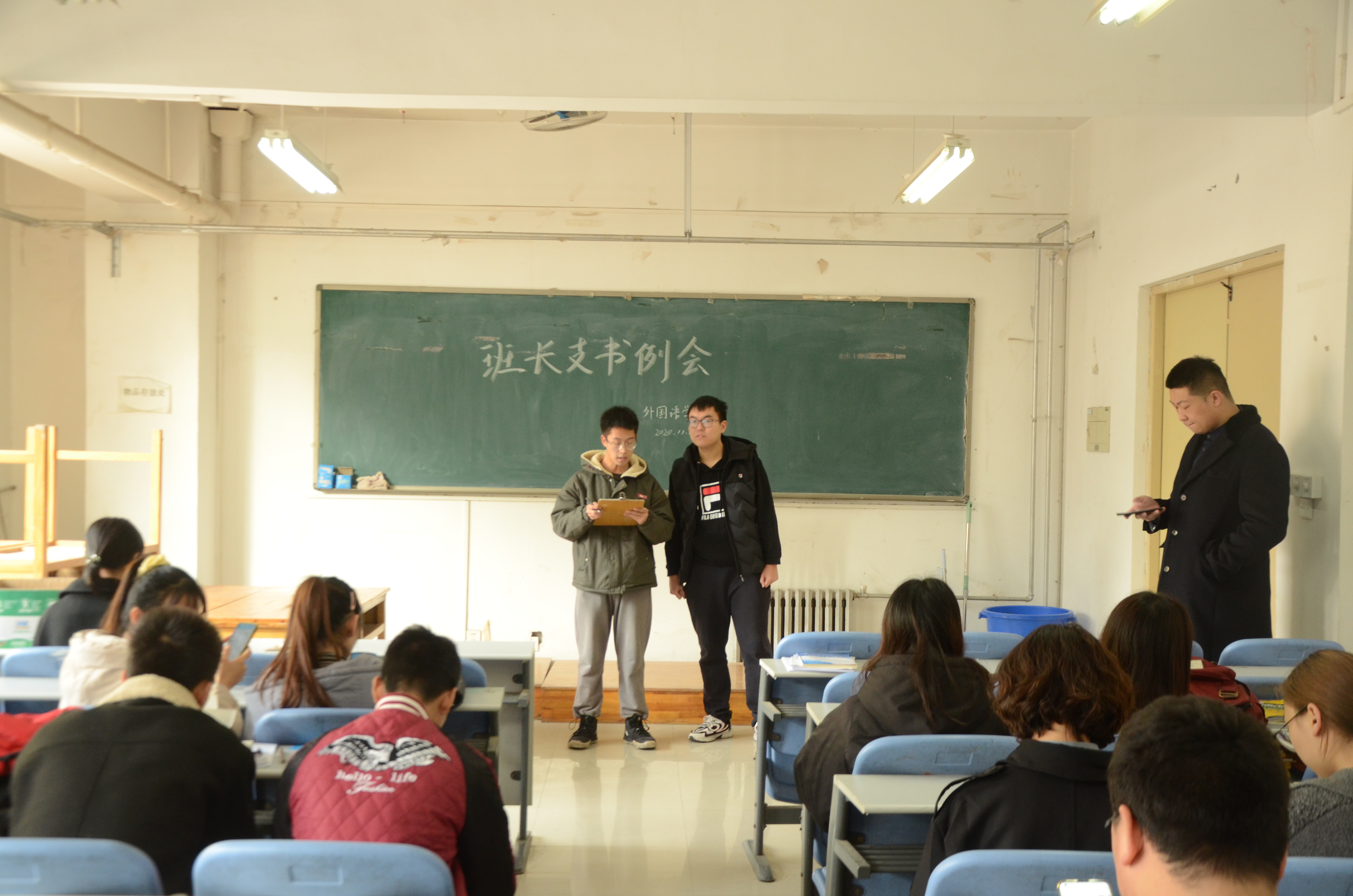 本网讯(审稿:李沛 供稿:王莉)为统筹部署近期各项事务,推进学生工作的有效开展。11月24日中午12点半,我院于龙子湖校区海棠园202自习室举办本学期第九次班长支书例会。团委书记李沛携主要学生干部及各班班长支书出席本次会议。