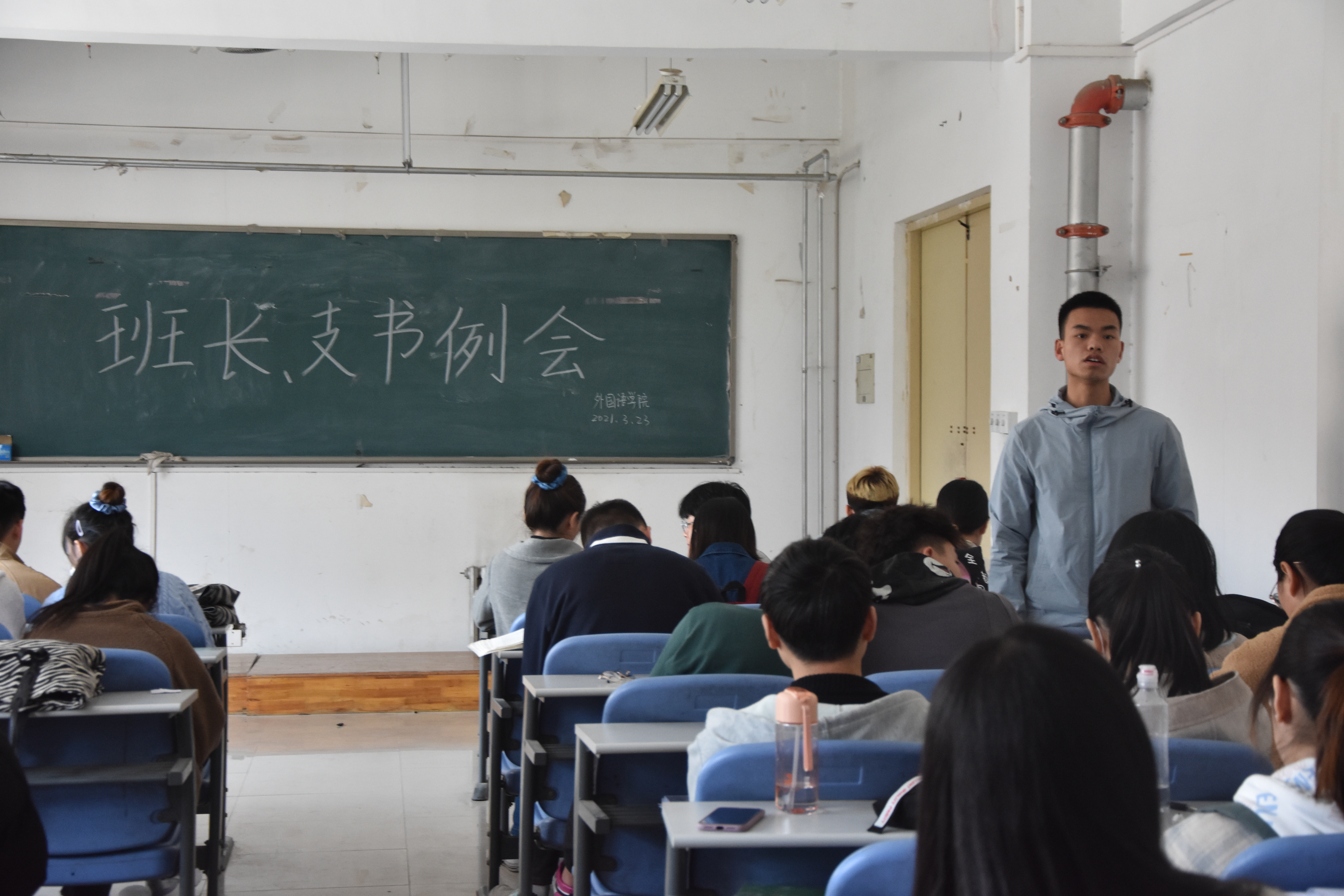 会议伊始,团办负责人对上周我院在青年大学习中的超高参与率提出表扬,希望同学们再接再厉,继续保持思想政治学习的热情,并提醒班长支书做好健康上报的督促工作;接下来,学实部负责人传达了我院在即将到来的“竞赛月”里等各项学术竞赛的相关通知,希望各班同学积极报名参与,在实践中提高自身专业水平。关于本学期补考事宜,她重申考试纪律,并宣布了我院相关部门将进行挂科追踪的决议,督促同学们认真学习,严于律己;文体部负责人强调了“海棠节”活动和公益宣讲会的举办时间及地点,希望各班同学踊跃参与,寓学于乐,不断提高自身的综合素质。