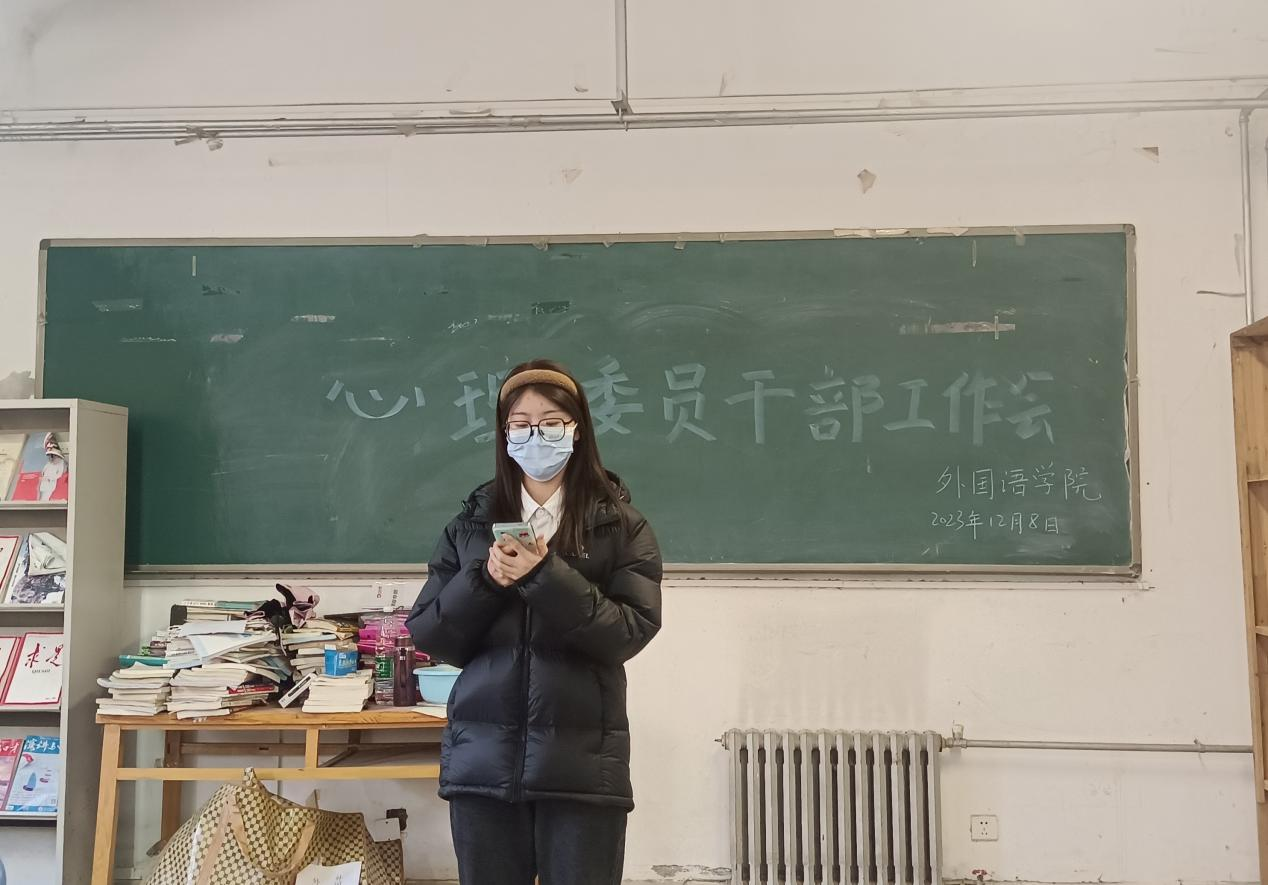 本网讯(审稿:王启佩 供稿:武宗励 赵雨焯)为准确了解学生近期心理健康状态,加强学院学生心理健康工作建设,12月8日中午,纵横中文网 在辅导员武宗励老师的带领下,于龙子湖校区举行本学期第六次心理委员干部工作会议。