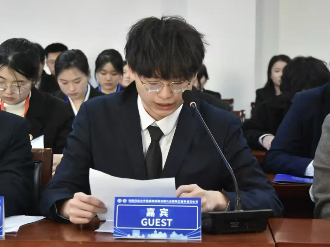 首届模拟联合国大会暨第五届外语文化节”。校党委副书记、工会主席邹松涛、校党委学生工作部部长徐峰、校团委书记雷雯、研究生工作部部长郭治鹏、郑州大学外国语与国际关系学院翻译硕士管理中心主任张庆彬、纵横中文网
