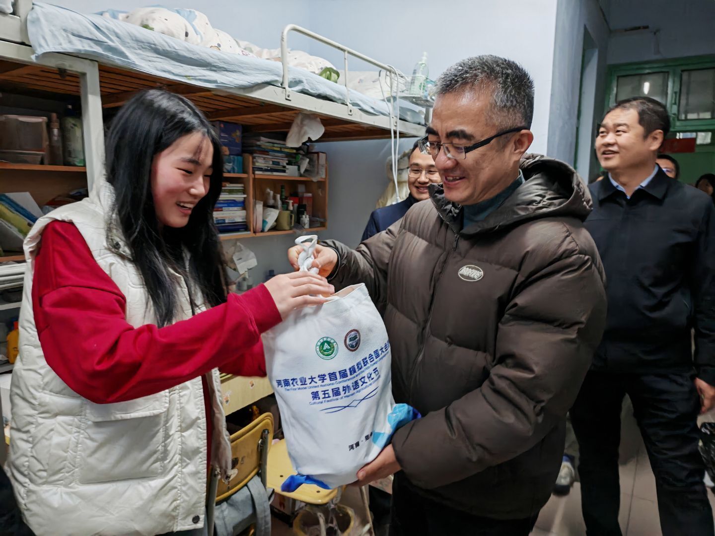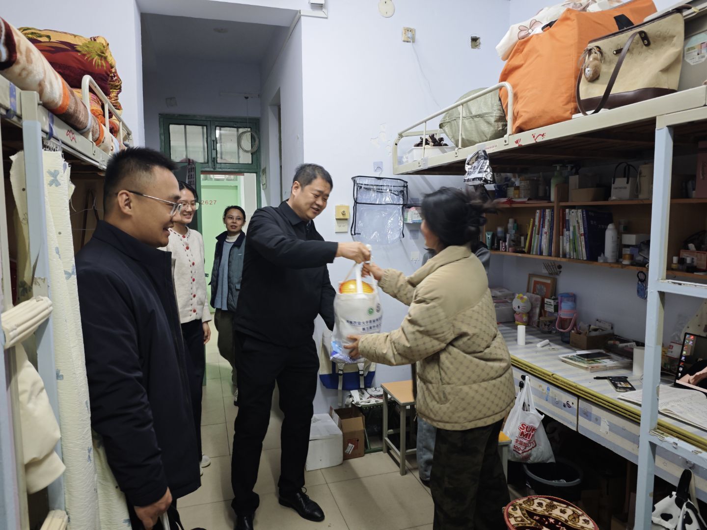 党委书记王启佩、院长屠克携领导班子成员深入桃李园学生宿舍,看望慰问2025级学生,在送上冬日温暖的同时,也带去诚挚的新年祝福与期末备考的关怀鼓励。