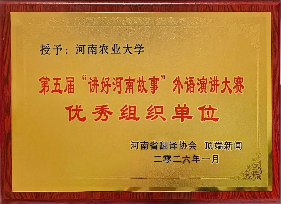 未来,学院将继续以各类高水平赛事为依托,鼓励更多学子以语言为桥,深挖河南文化的时代价值与精神内涵,在更广阔的舞台上传播河南声音、展现农大学子的专业素养与文化担当,为推动河南文化国际化传播贡献力量。