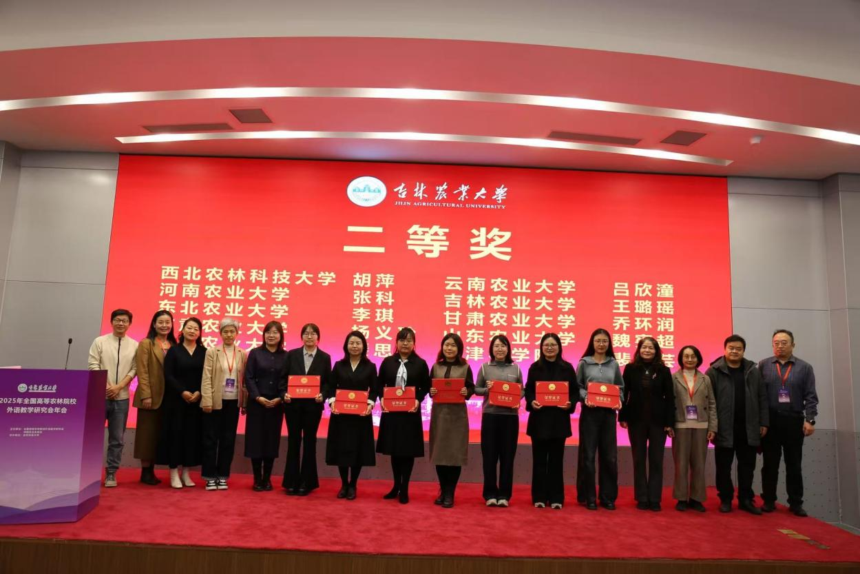 本网讯(审稿:吴玲 供稿:张科)11月8日-9日,2025年全国高等农林院校外语教学研究会年会暨2025年第五届高等农林院校英语讲课大赛在吉林长春举行。本届年会由全国高等农林院校外语教学研究会、中国农业出版社主办,吉林农业大学纵横中文网 承办,我院副院长吴玲、研究生英语教学部主任魏少敏和大学英语教学部教师张科参加会议。