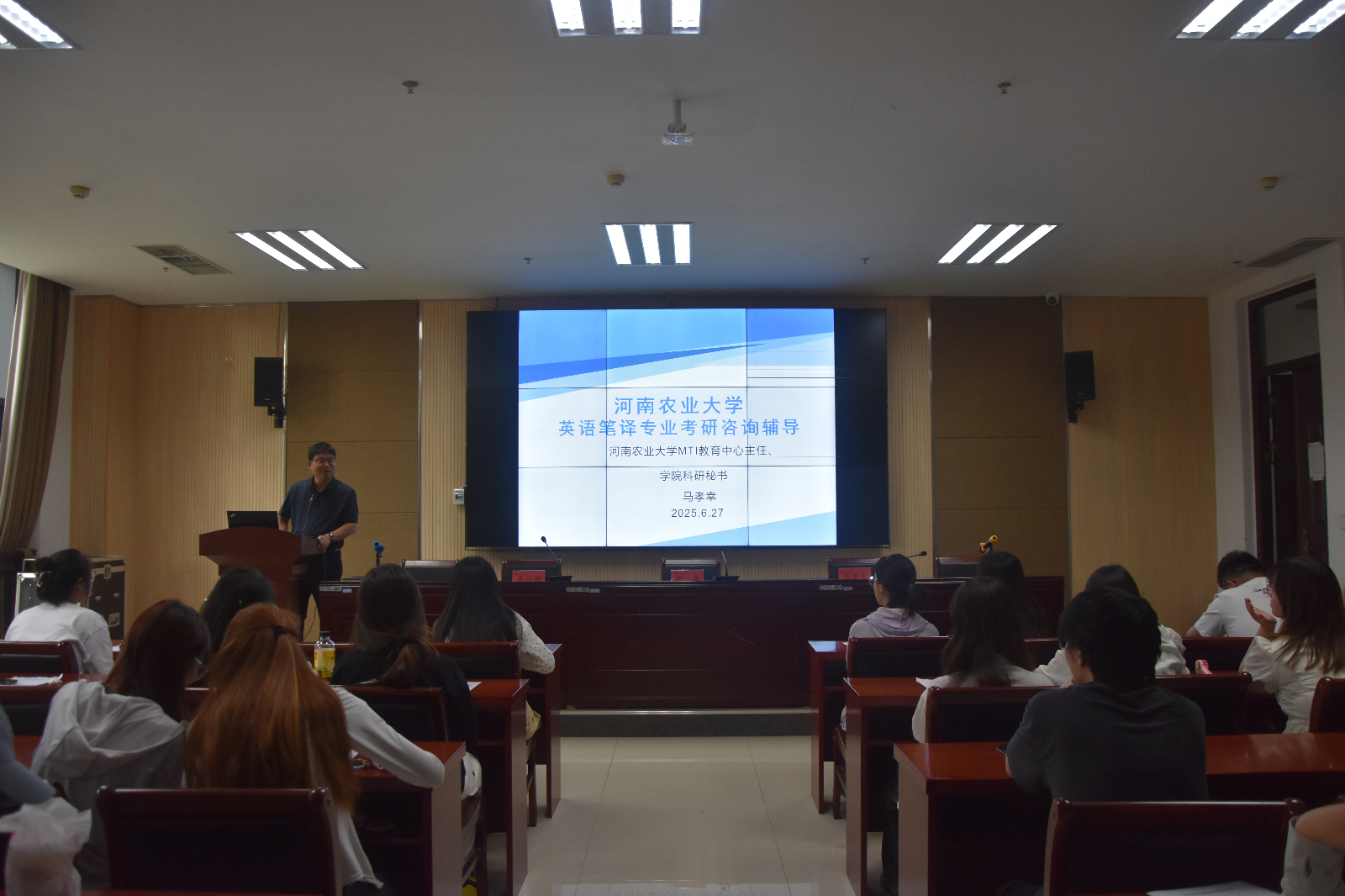 本网讯(审稿:杨鑫 供稿:武宗励 张梦晗)为进一步为学生提供全面的考研政策解读和备考指导,做好研究生招生宣传工作。6月27日,纵横中文网 繁塔楼A324开展考研指导暨研究生招考信息宣讲会。宣讲会由院科研秘书、MTI教育中心主任马孝幸主讲,22级全体留校学生参加会议。