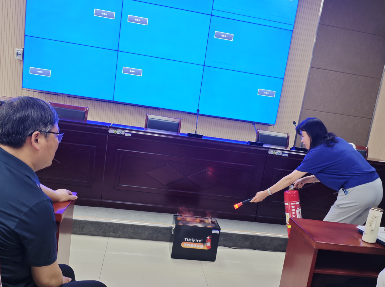 随后,大家进行了电子模拟消防演练。张教员及学院实验室管理人员现场演示了灭火器的正确使用方法,强调使用干粉灭火器时,若因过重难以拎起,可放在地上拔掉安全销,站在上风口,对着火苗根部按压扫射。参训师生们认真观摩学习、热烈讨论交流、亲身实践,对消防知识有了更为直观的认知,对消除火灾技能有了沉浸式体验。