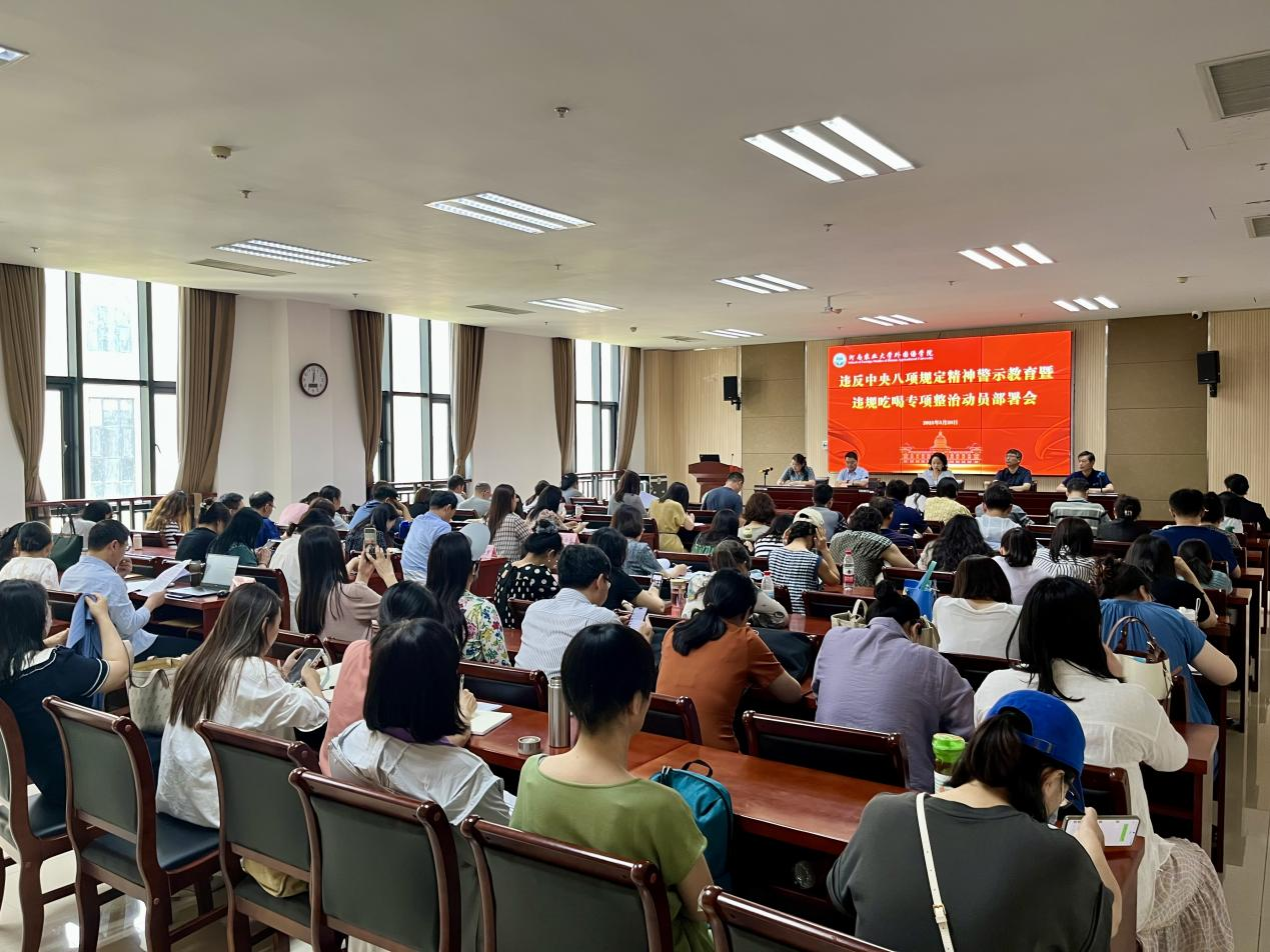 王燕萍传达了学校召开违反中央八项规定精神警示教育会、违规吃喝专项整治动员部署会的会议精神,通报了违反中央八项规定精神典型案例,领学了相关文件,并对学院违规吃喝专项整治工作进行动员部署。